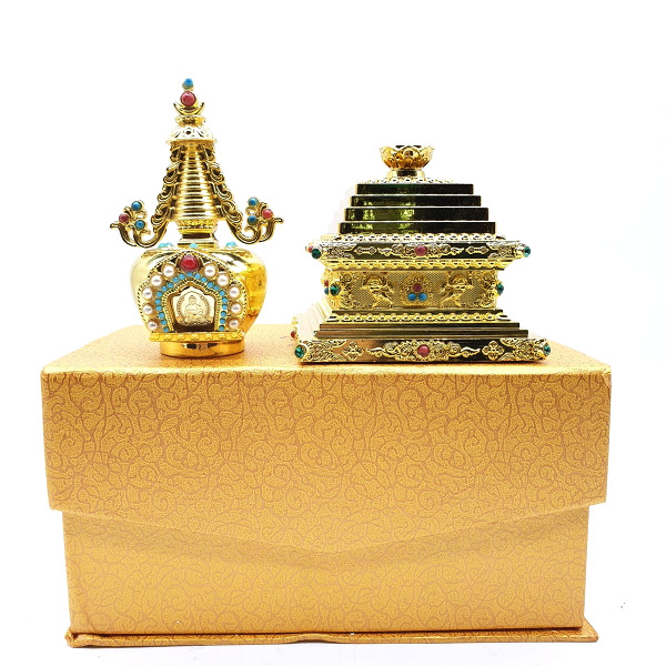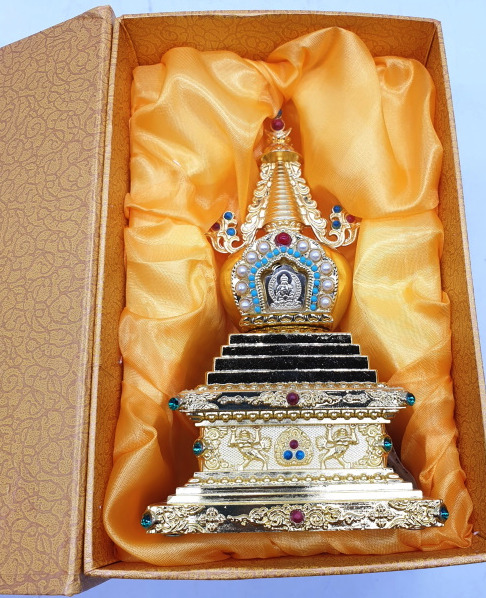 Tháp Xá Lợi_Chất liệu Hợp Kim Đồng Xi Vàng Trong_17x9,5cm