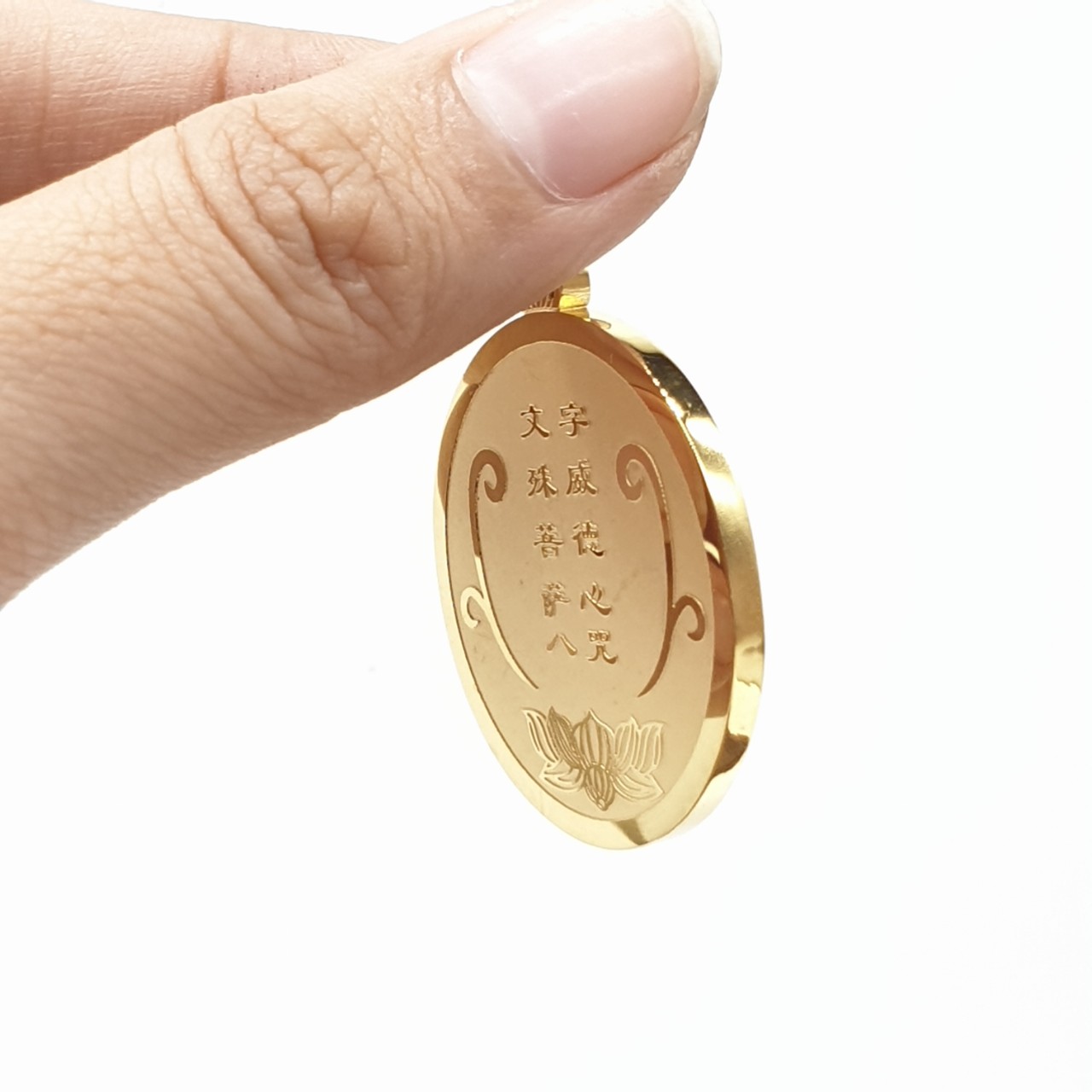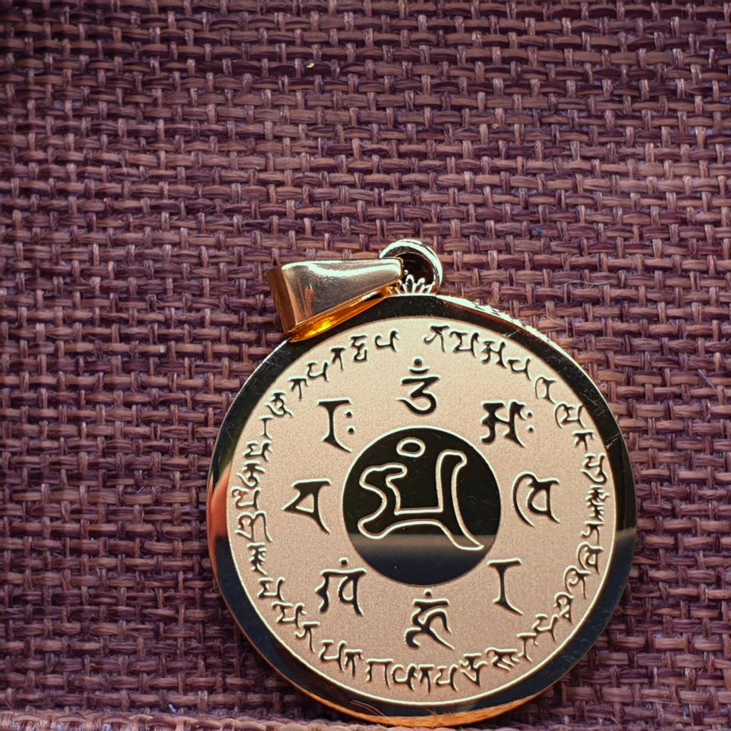 Mặt Đeo Bát Tự Văn Thù Vàng Khắc Chữ_Chất liệu Titan_32mm