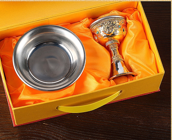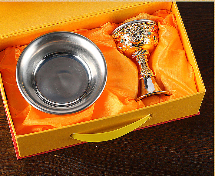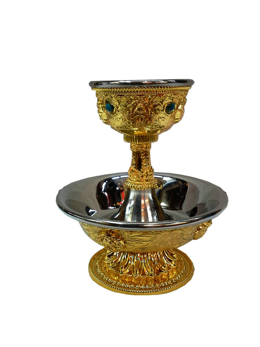 Bộ Ly Cúng Dường Hộ Pháp Tây Tạng Đế Rời_Chất liệu Hợp Kim Xi Vàng (dưới 6x11cm/ trên 10x6,5cm)