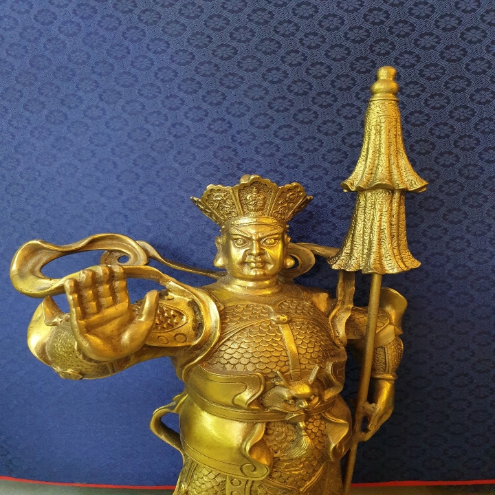 Thiên vương Đa Văn cầm cái dù. Vì trời có mưa thì mới phải cầm dù, cho nên lấy chữ “vũ” (mưa), và chức vụ của ông ta là “vũ”