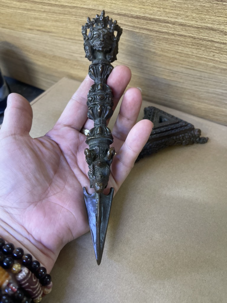 Chày Phổ Ba Kim Cang 2 Chày Đồng Nâu Kèm Đế 20x3 cm