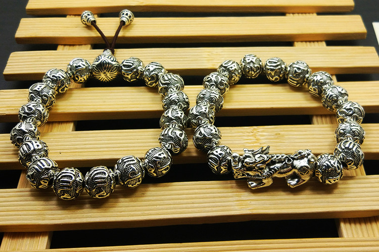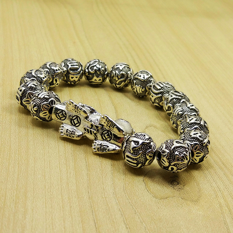 Chuỗi Bạc Khắc Thần Chú Phối Tì Hưu Đeo Tay_10ly