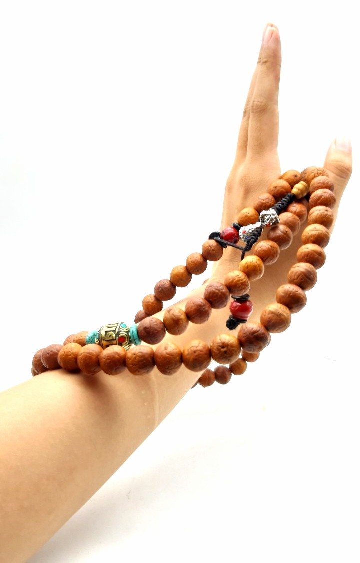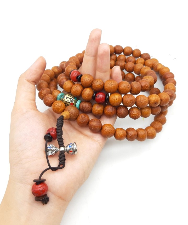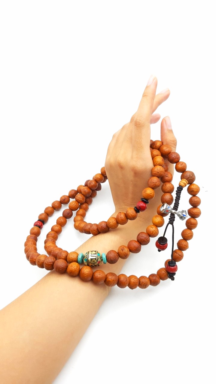 Được làm từ những hạt Bồ đề Phật Nhãn tự nhiên của Nepal/Tây Tạng (các quốc gia nổi tiếng với loại cây này bởi vùng khí hậu độc đáo vùng Himalaya), trên mỗi hạt có 1 ngấn tự nhiên giống như hình mắt của Đức Phật. Đặc biệt khi hành giả càng lần nhiều, hạt sẽ chuyển màu nâu đậm và bóng, ở chính giữa ngấn mắt là 1 mống nhân và nó có thể bật lên tạo thành hình giống như con ngươi của mắt. Giống Bồ đề mắt Phật chỉ được tìm thấy ở Nepal/Tây Tạng và vùng Bắc Ấn, mỗi năm cây ra hoa kết trái 1 vụ do đó người dân địa phương cũng thu hoạch có thời vụ.