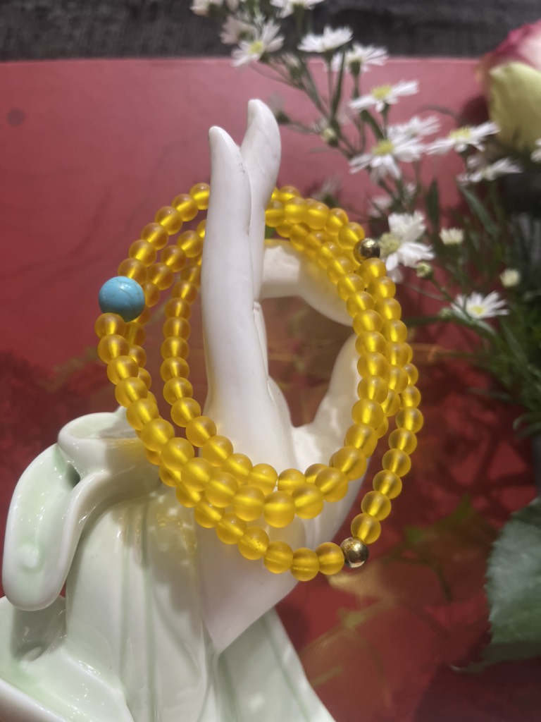Chuỗi Lưu Ly Vàng 6 Ly Phối Phụ Kiện Quấn Tay-38gr