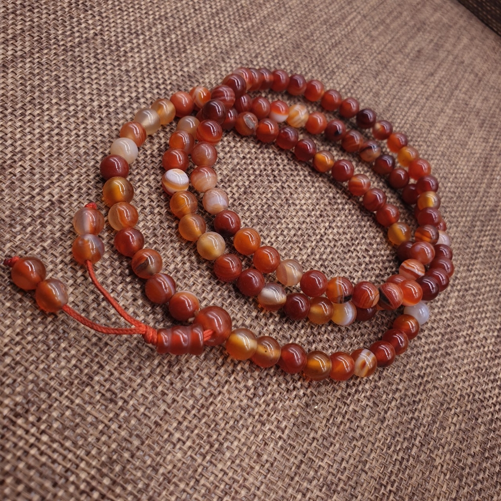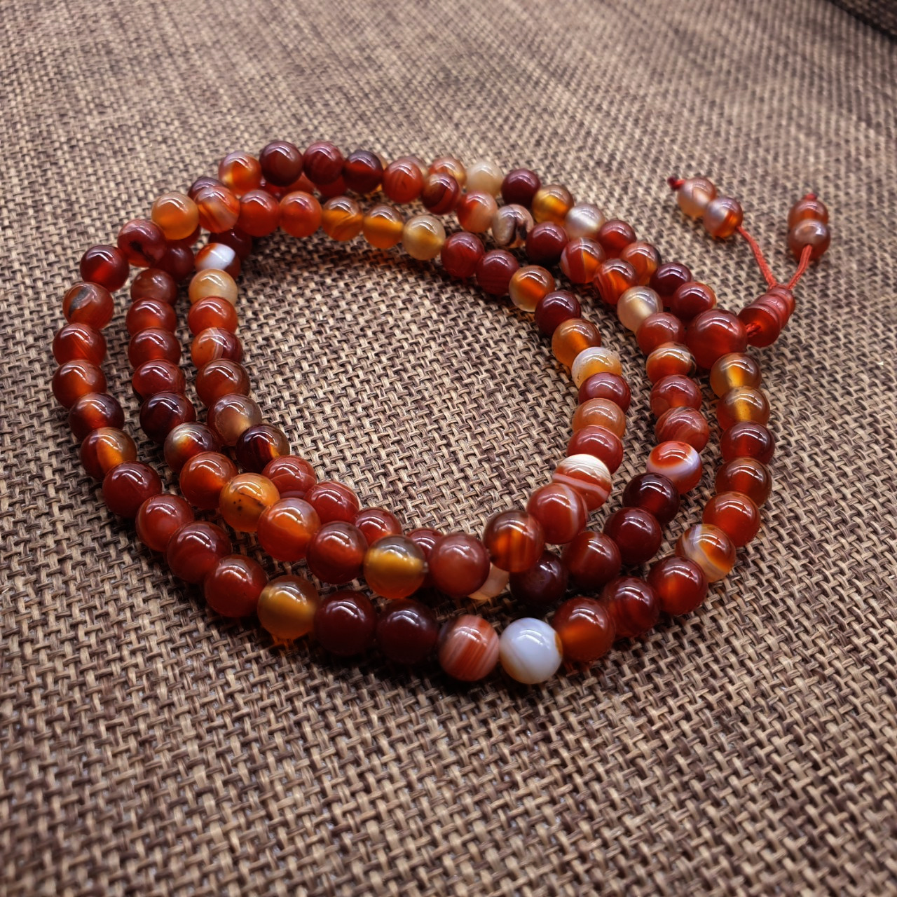 Chuỗi Đá Mã Não Kiểu Koren Đỏ Trắng_ 6 Ly_108 Hạt