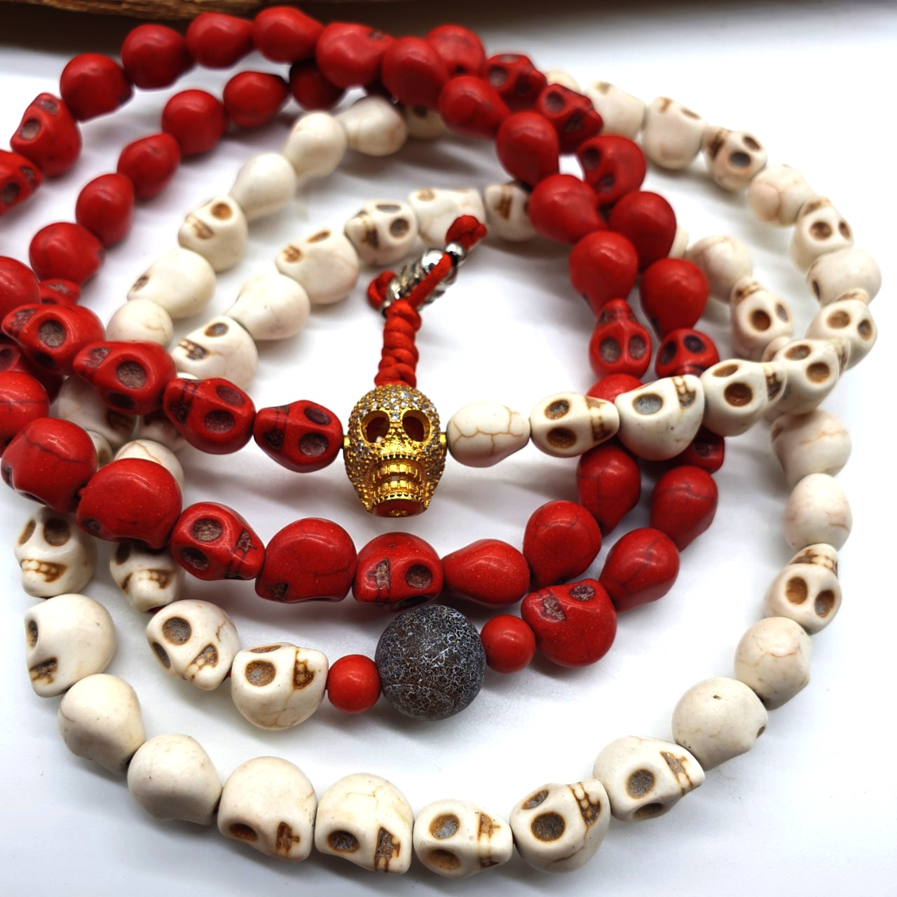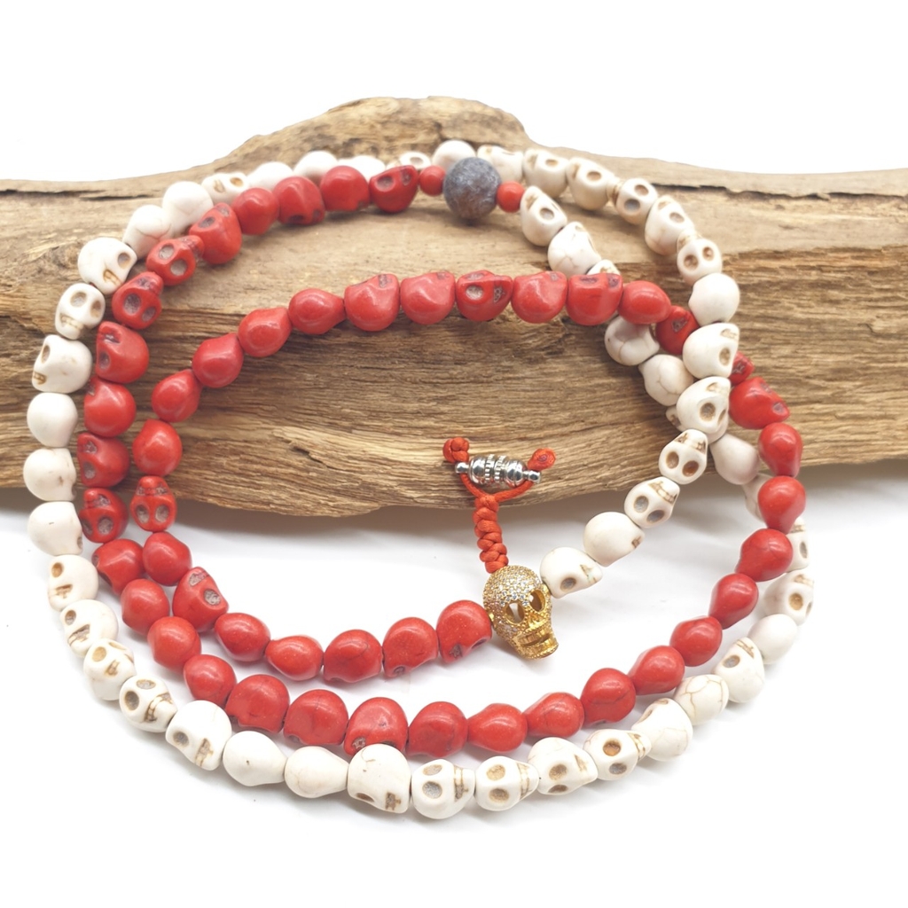 Chuỗi Đá San Hô Đỏ Trắng_8 Ly_108 Hạt