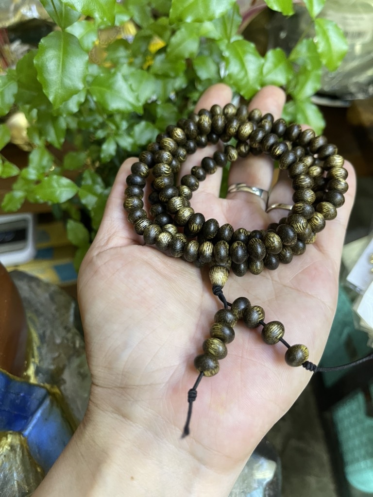 Chuỗi Trầm Tóc Tia Dầu Bầu Dẹp 8 ly/108 viên