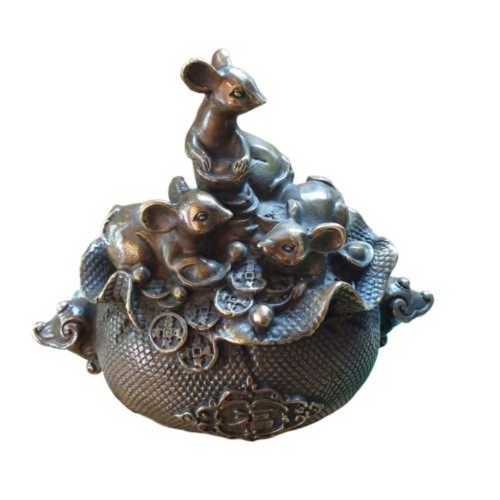 Chuột Tam Tý Đứng Túi Tiền_13x16cm_Tượng Phong Thủy