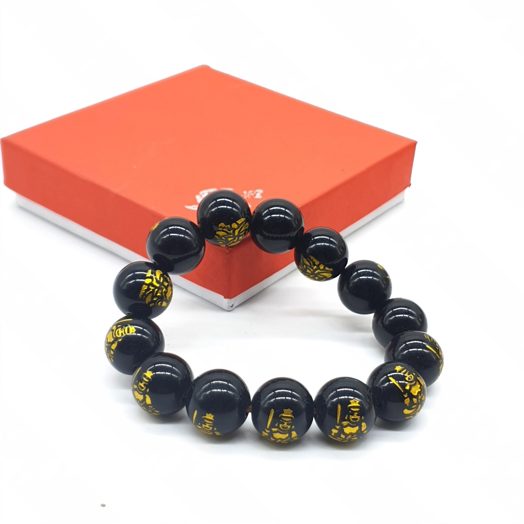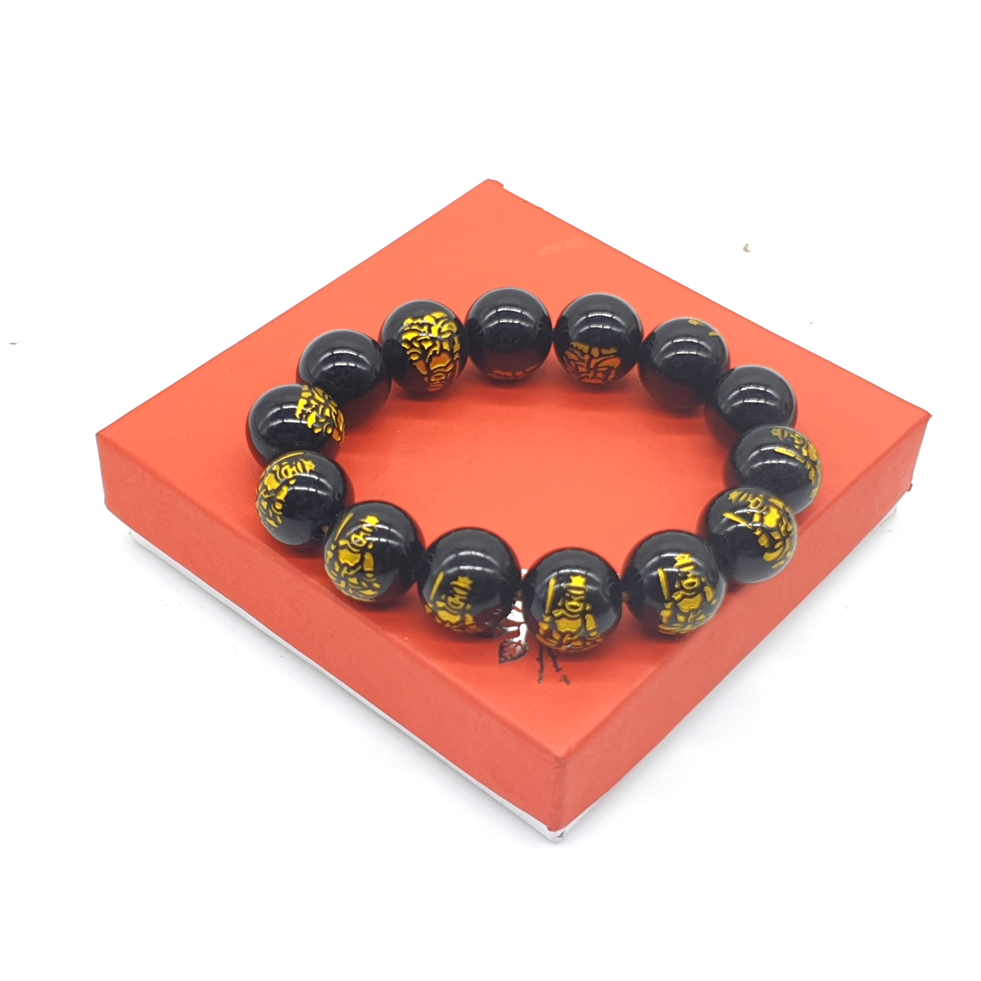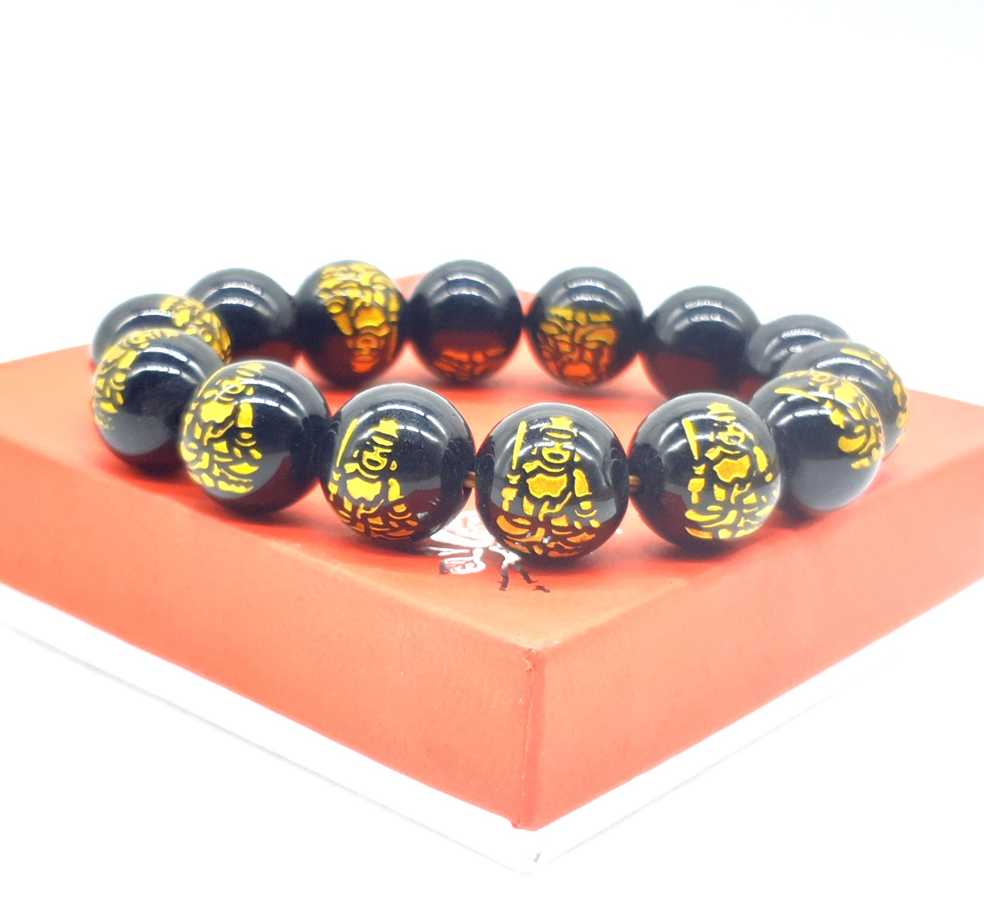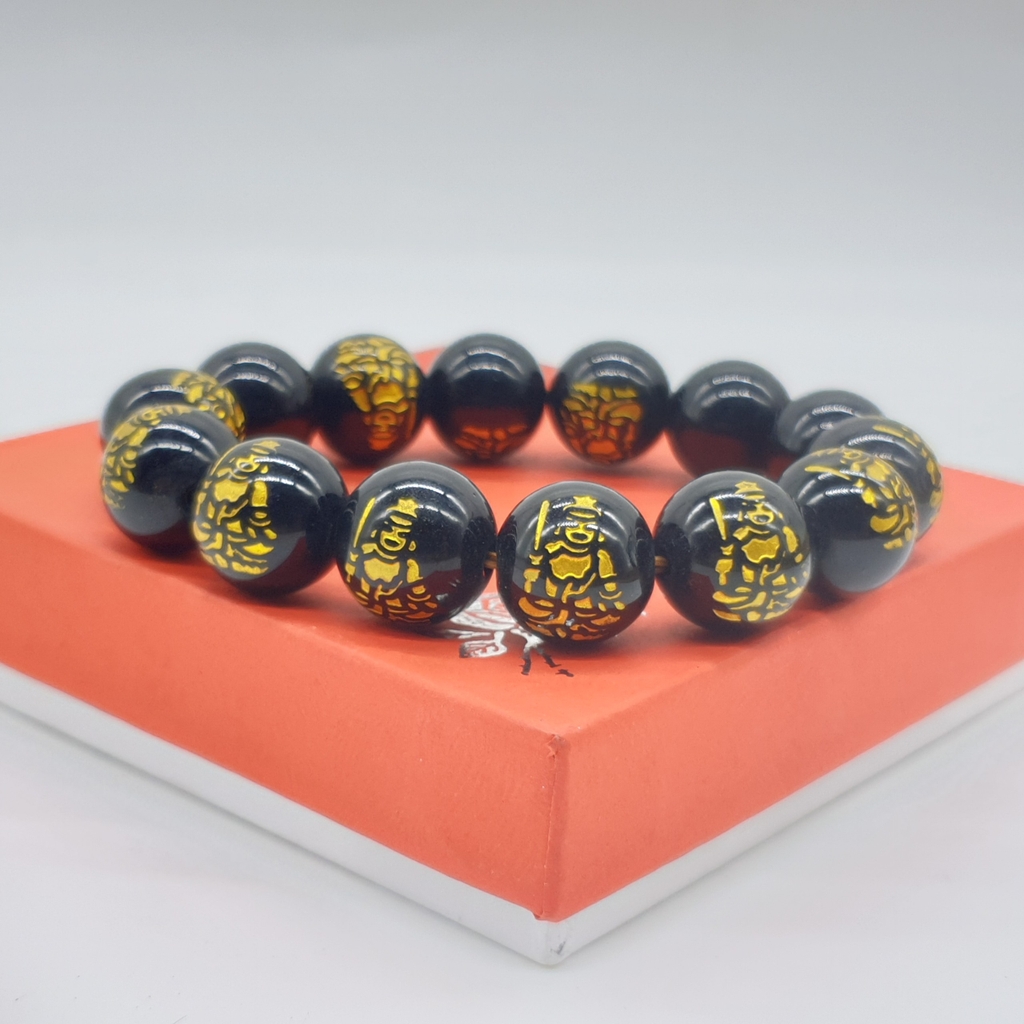 Chuỗi Đá Mã Não Khắc Phật,Đen,Tròn Đeo Tay_12ly