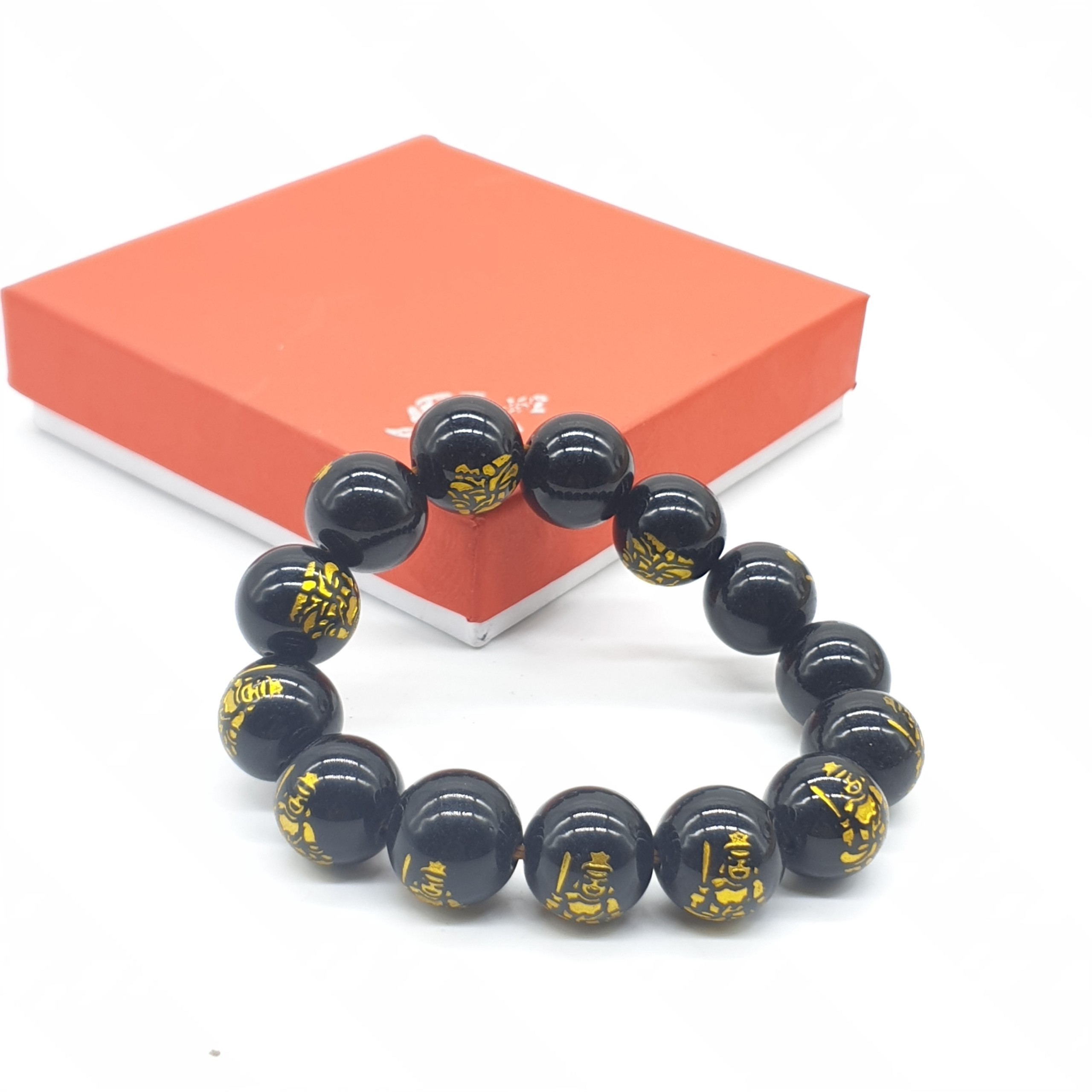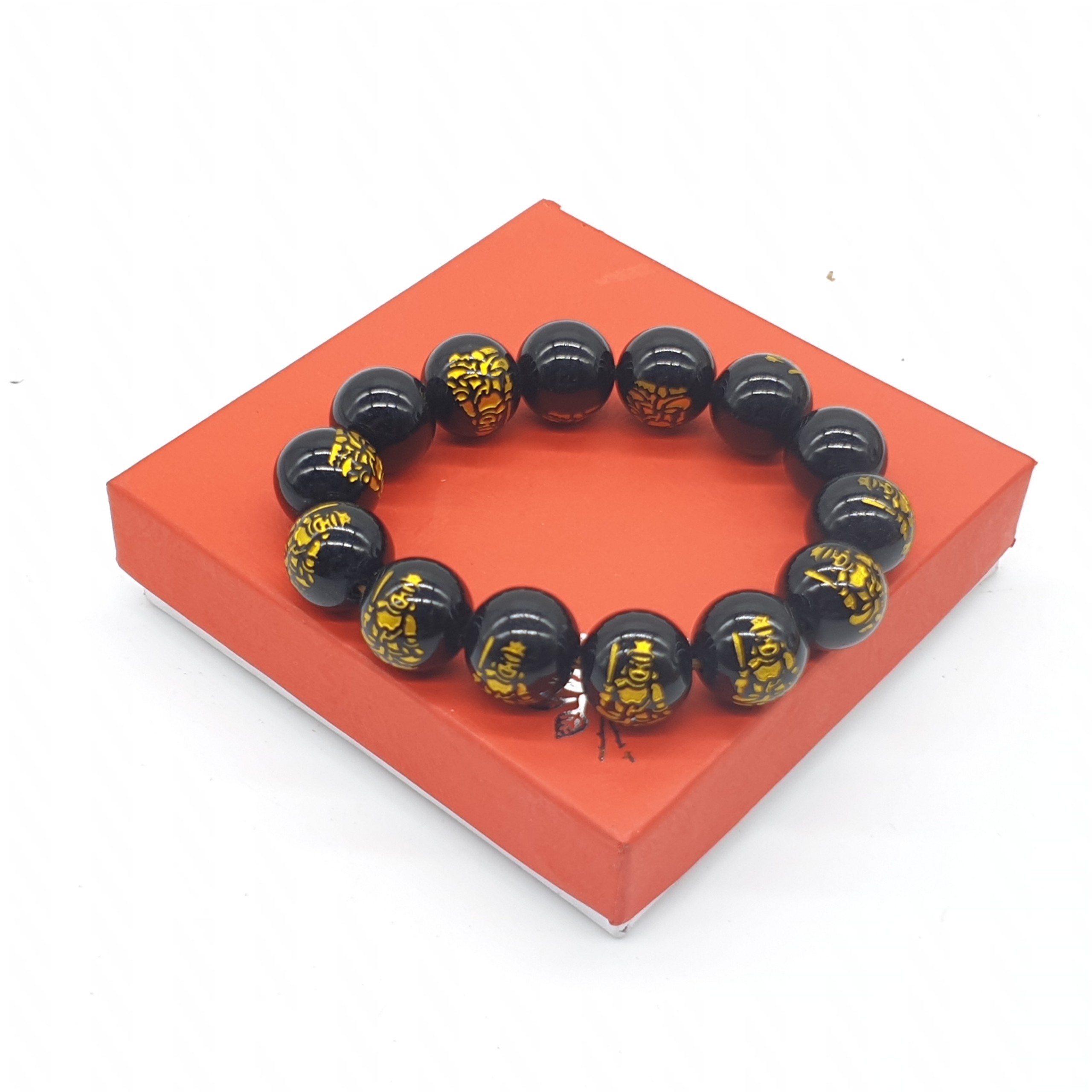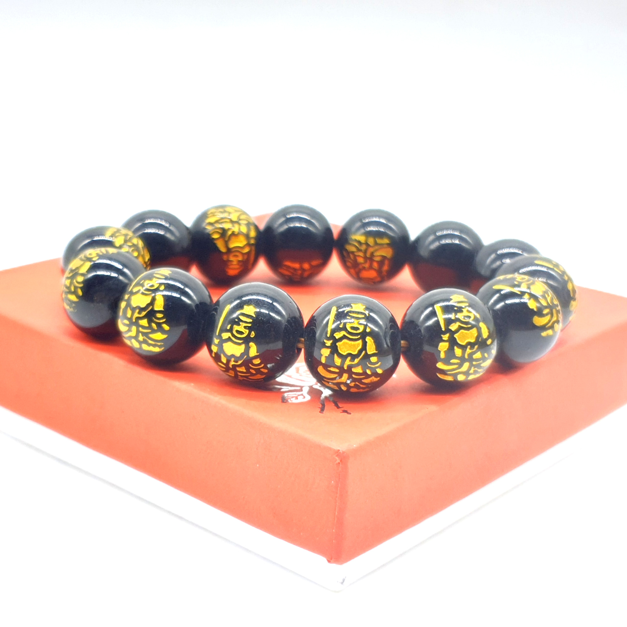 Chuỗi Đá Mã Não Khắc Phật,Đen,Tròn Đeo Tay_14ly