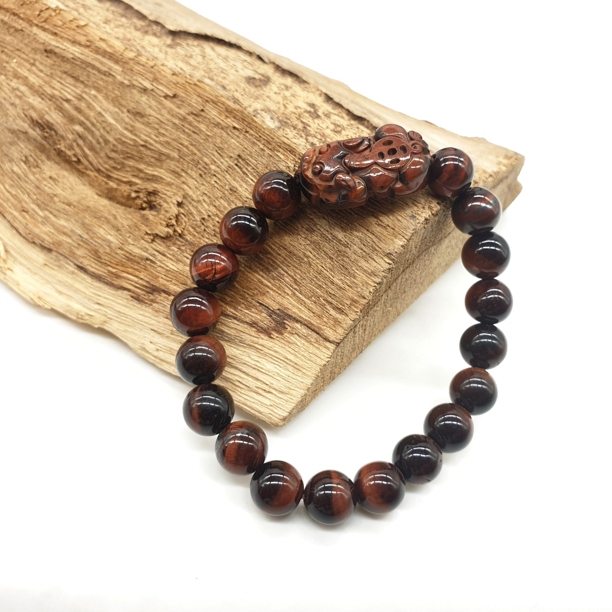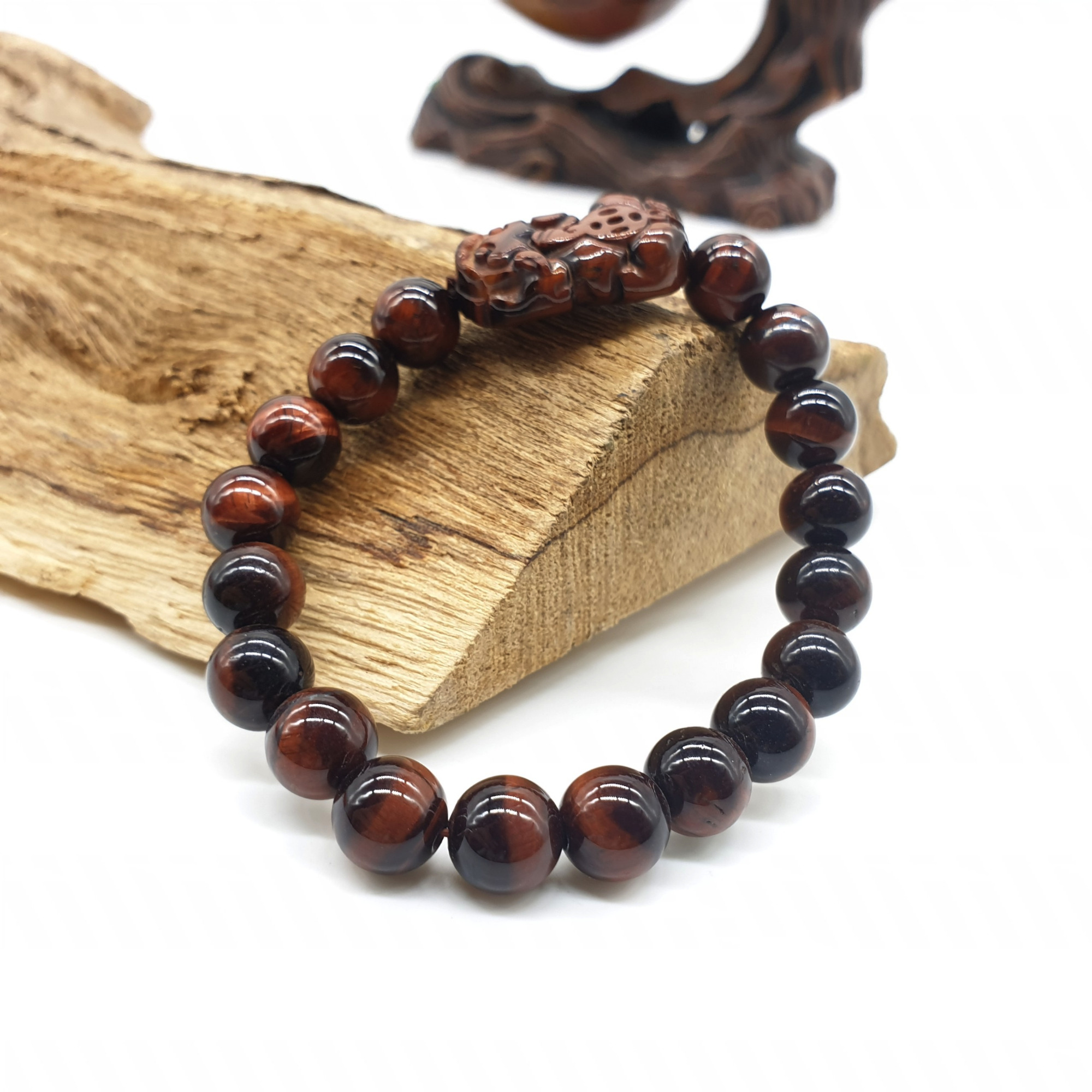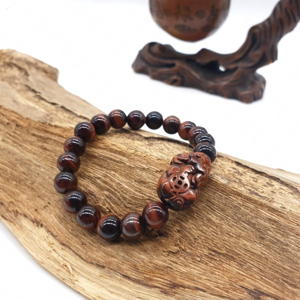 Vòng tay đá mắt hổ đỏ nâu là loại khá hiếm trong các biến thể của đá mắt hổ. Trong phong thủy, màu nâu đỏ thuộc hành Hỏa nên một chiếc vòng với màu đá này sẽ hợp với những người mệnh Hỏa và mệnh Thổ.