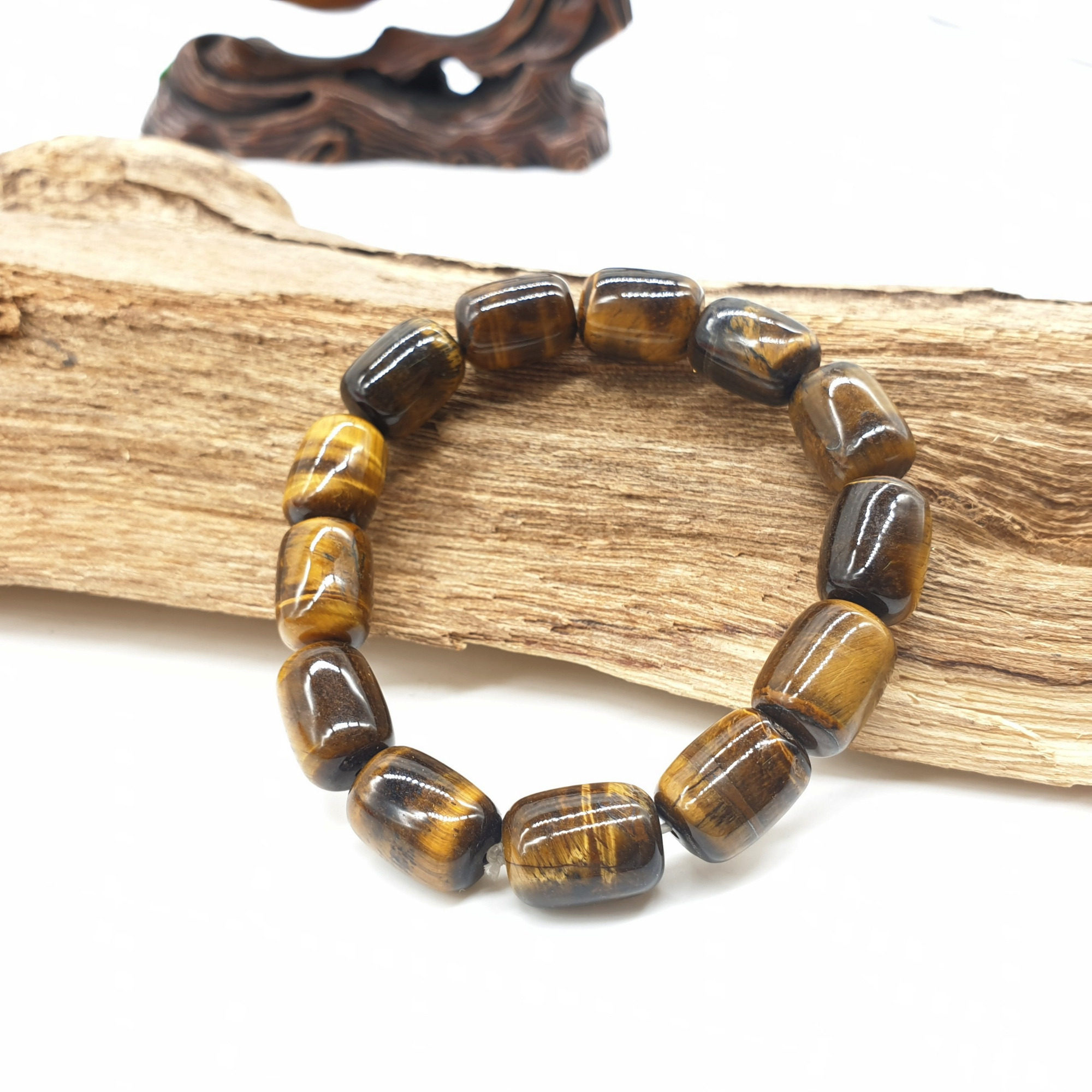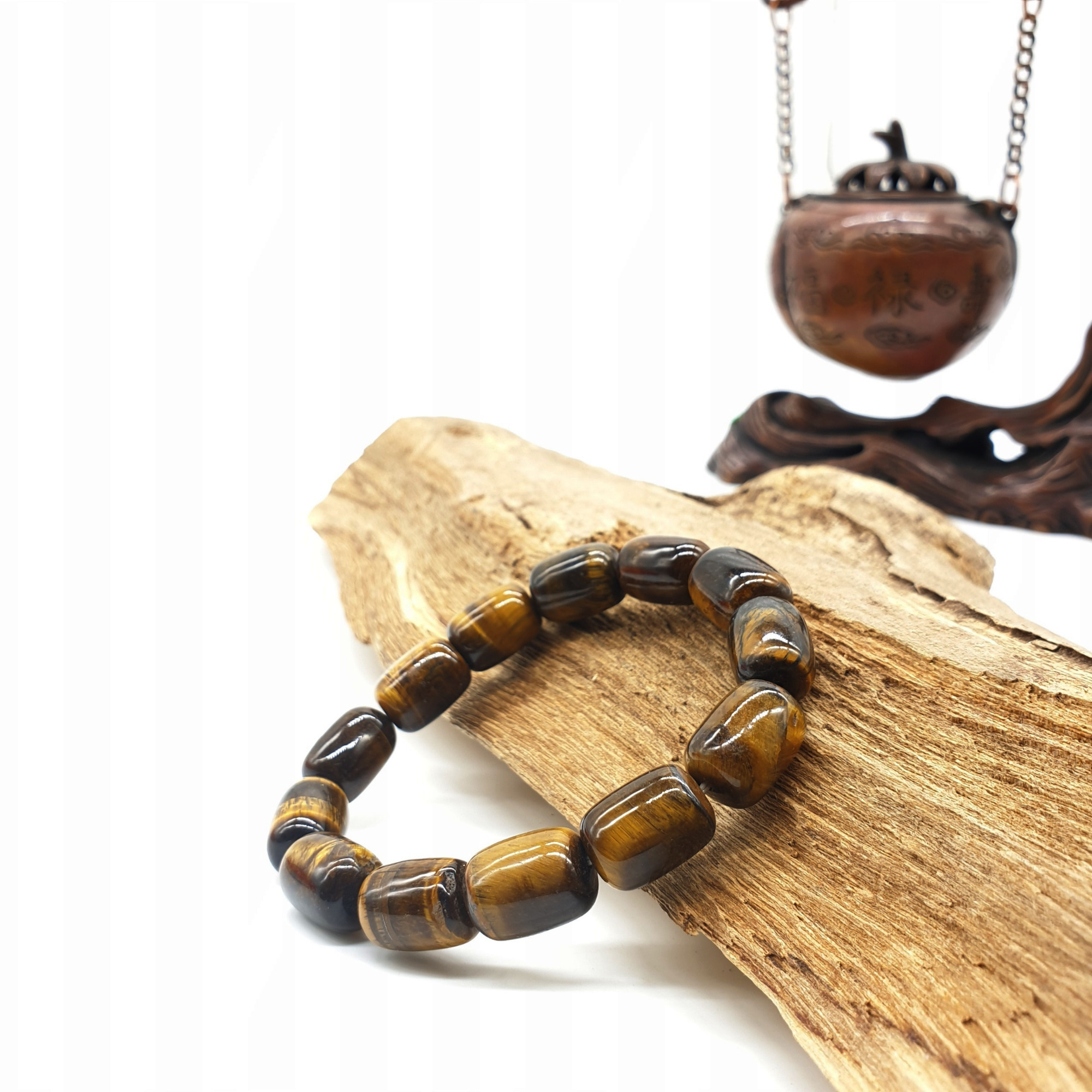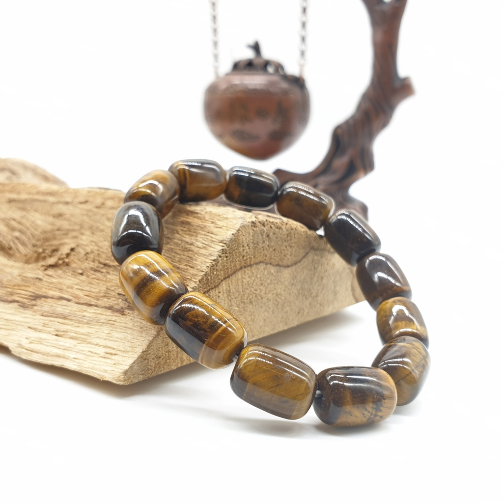 Vòng đá mắt hổ màu vàng tươi là biến thể hiếm gặp nhất trong tự nhiên, nằm lẫn với biến thể màu nâu vàng, với màu sắc đẹp, lấp lánh sang trọng, loại đá này có giá trị thương mại cao. Màu vàng tươi tượng trưng cho hành Thổ nên chiếc vòng đá mắt hổ vàng tươi sẽ hợp với những người mệnh Thổ và mệnh Kim.