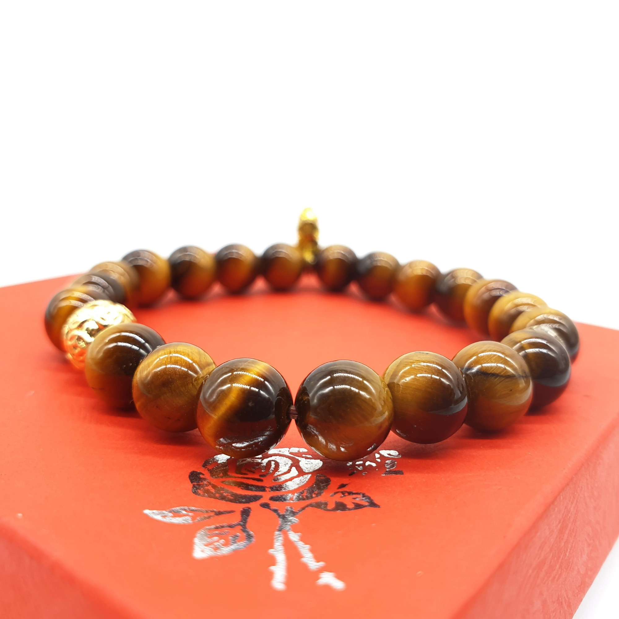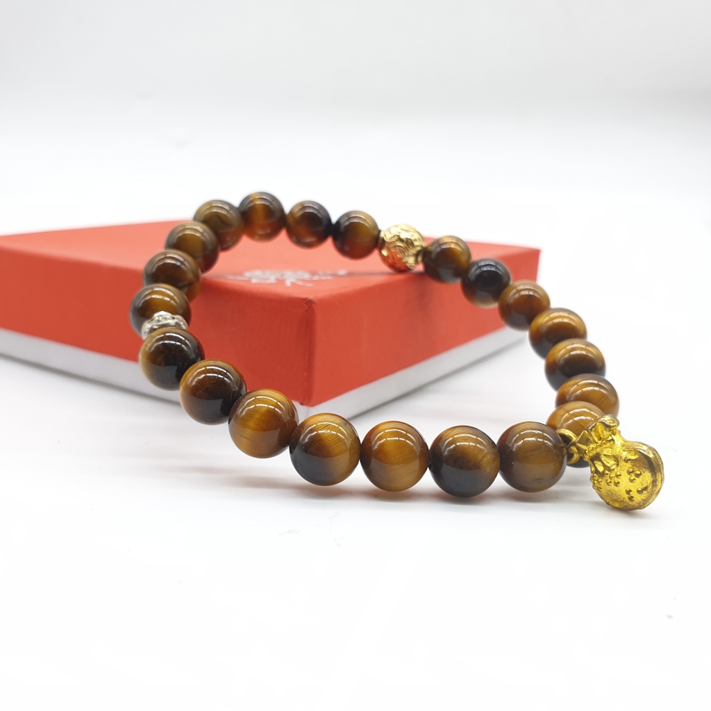 Vòng đá mắt hổ màu vàng tươi là biến thể hiếm gặp nhất trong tự nhiên, nằm lẫn với biến thể màu nâu vàng, với màu sắc đẹp, lấp lánh sang trọng, loại đá này có giá trị thương mại cao. Màu vàng tươi tượng trưng cho hành Thổ nên chiếc vòng đá mắt hổ vàng tươi sẽ hợp với những người mệnh Thổ và mệnh Kim.