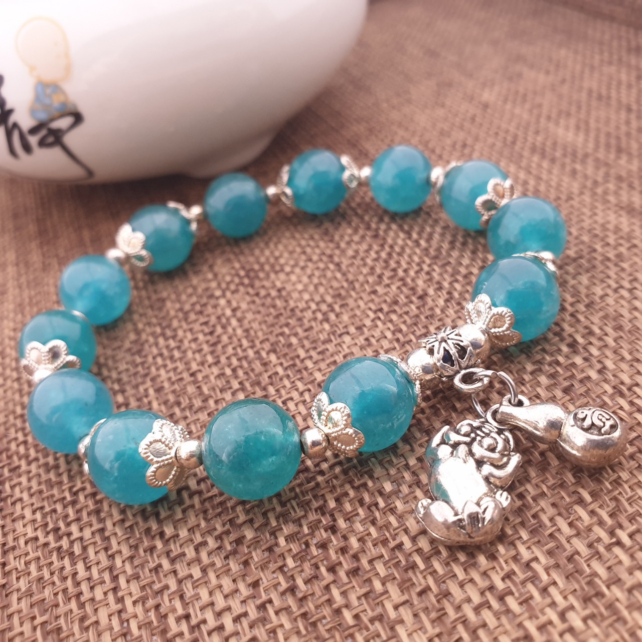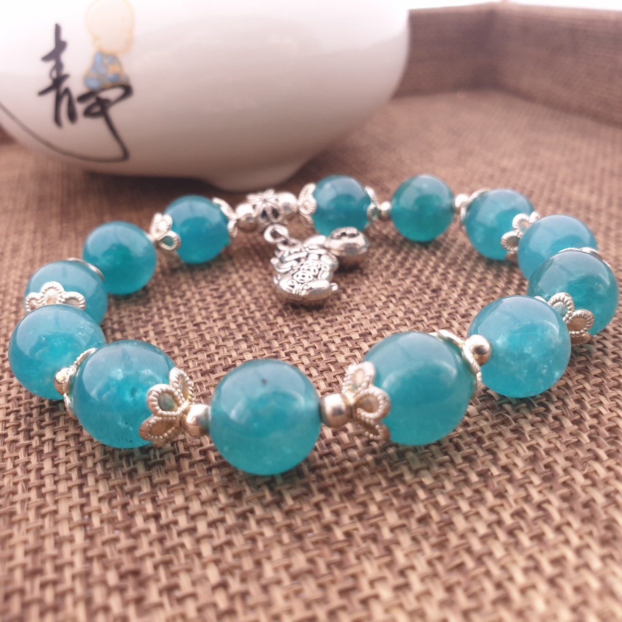 Chuỗi Đá Thạch Anh Xanh Biển, Phụ Kiện Tỳ Hưu Đeo Tay_10ly
