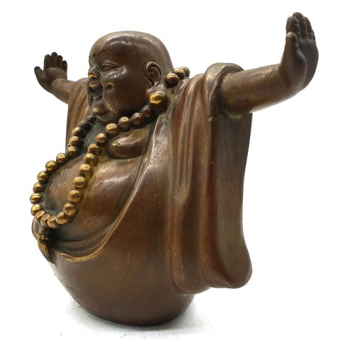 Bụng Phật càng to, may mắn càng nhiều Trong Phong Thủy người ta thường rất thích chọn những tượng Phật có khuôn mặt cười hả hê, với mong muốn sẽ nhận được thật nhiều niềm vui và mọi sự luôn được như ý. Là biểu tượng cho sự thịnh vượng, Chúng ta thường bắt gặp hình ảnh Phật Di Lặc gắn liền với các biểu tượng giàu sang như thỏi vàng, đồng tiền, và chiếc túi vải được cho là bên trong chứa rất nhiều châu báu. Đôi khi Phật Di Lặc cũng mang theo chiếc Gậy như ý - biểu tượng của quyền lực, cũng có khi ta lại thấy Phật Di Lặc mang theo chiếc bình Hồ Lô - biểu tượng cho sức khỏe và trường thọ lâu dài.