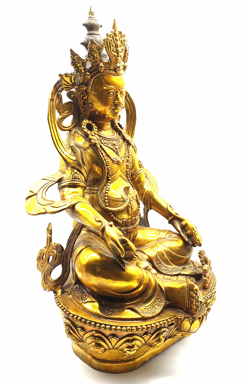 Đức Jambala (còn được gọi là Dzambala) là vị thần Tài Bảo và là một thành viên của gia đình Châu Báu (Bảo Bộ). Ngài được tin tưởng là một hóa thân của Quan Thế Âm, vị Phật của Lòng Bi Mẫn, hiện lộ là vị Phật ban phát tài bảo. Về sự hóa hiện của Quan Thế Âm, câu chuyện được khởi nguồn từ Lama Atisha, là một Lama đức cao vọng trọng của dòng truyền Gelug, khi ngài đang bộ hành ở Bồ Đề Đạo Tràng thì gặp một cụ già đang chết vì đói. Lama Atisha rất buồn vì sự thống khổ của cụ già. Lama Atisha lại không có dù chỉ là một chút thức ăn để bố thí cho cụ già, vì thế nên ngài lập tức cắt thịt của ngài để bố thí cho cụ già. “Làm sao tôi có thể ăn thịt của một vị tăng?” cụ già từ chối ăn miếng thịt đó. Lama Atisha đặt miếng thịt xuống, cảm thấy buồn và vô dụng quá thì một ánh sáng đột nhiên xuất hiện trước ngài. Đó là Thiên Thủ Thiên Nhãn Quan Thế Âm Bồ Tát, nói với Atisha: “Ta sẽ hóa hiện thành Jambhala, vị Phật của Tài bảo nhằm giúp đỡ những chúng sinh đau khổ. Ta sẽ làm vơi đi sự nghèo khổ để họ sẽ không còn bị sao lãng khỏi thực hành về thiện tâm.”