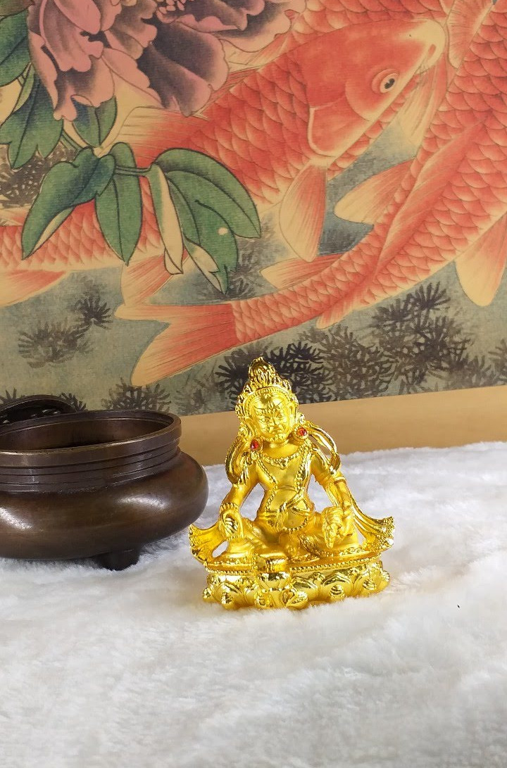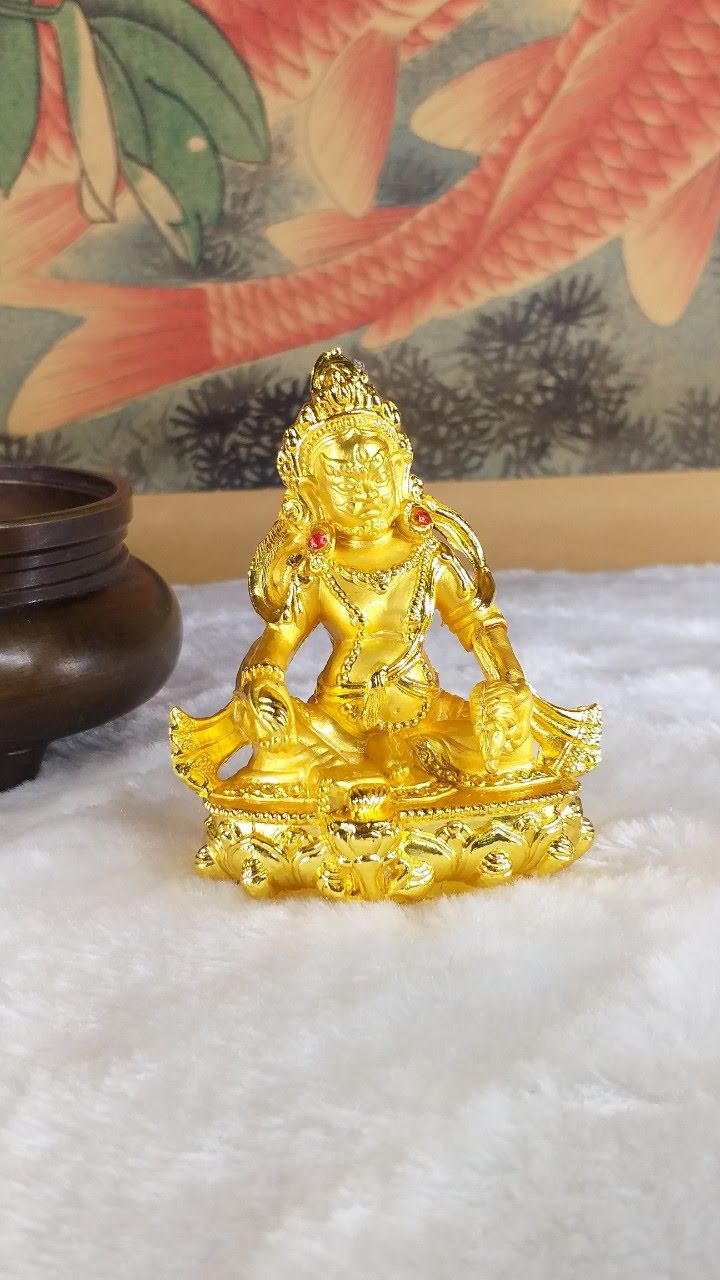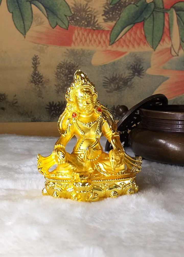 Đức Jambala (còn được gọi là Dzambala) là vị thần Tài Bảo và là một thành viên của gia đình Châu Báu (Bảo Bộ). Ngài được tin tưởng là một hóa thân của Quan Thế Âm, vị Phật của Lòng Bi Mẫn, hiện lộ là vị Phật ban phát tài bảo. Về sự hóa hiện của Quan Thế Âm, câu chuyện được khởi nguồn từ Lama Atisha, là một Lama đức cao vọng trọng của dòng truyền Gelug, khi ngài đang bộ hành ở Bồ Đề Đạo Tràng thì gặp một cụ già đang chết vì đói. Lama Atisha rất buồn vì sự thống khổ của cụ già. Lama Atisha lại không có dù chỉ là một chút thức ăn để bố thí cho cụ già, vì thế nên ngài lập tức cắt thịt của ngài để bố thí cho cụ già. “Làm sao tôi có thể ăn thịt của một vị tăng?” cụ già từ chối ăn miếng thịt đó. Lama Atisha đặt miếng thịt xuống, cảm thấy buồn và vô dụng quá thì một ánh sáng đột nhiên xuất hiện trước ngài. Đó là Thiên Thủ Thiên Nhãn Quan Thế Âm Bồ Tát, nói với Atisha: “Ta sẽ hóa hiện thành Jambhala, vị Phật của Tài bảo nhằm giúp đỡ những chúng sinh đau khổ. Ta sẽ làm vơi đi sự nghèo khổ để họ sẽ không còn bị sao lãng khỏi thực hành về thiện tâm.”