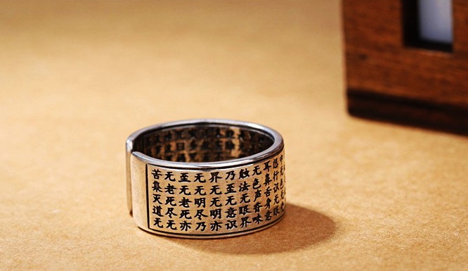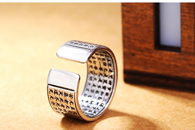 Nhẫn Khắc Bát Nhã Chú Đại Bi Màu Bạc Chữ Đen_21x12mm_Chất liệu Bạc