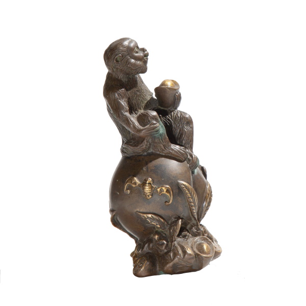 Khỉ Ngồi Đào,Cầm Vàng_15cm_Tượng Phong Thủy