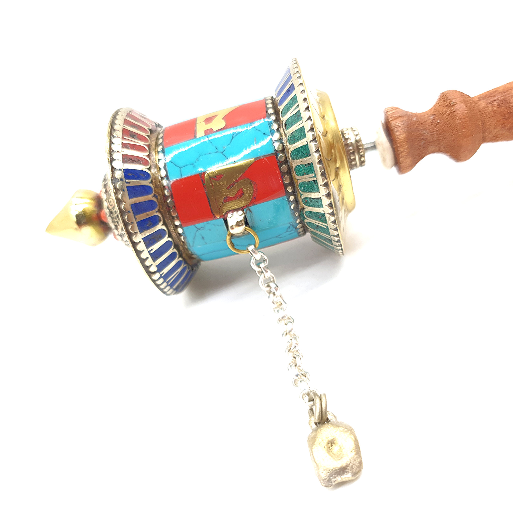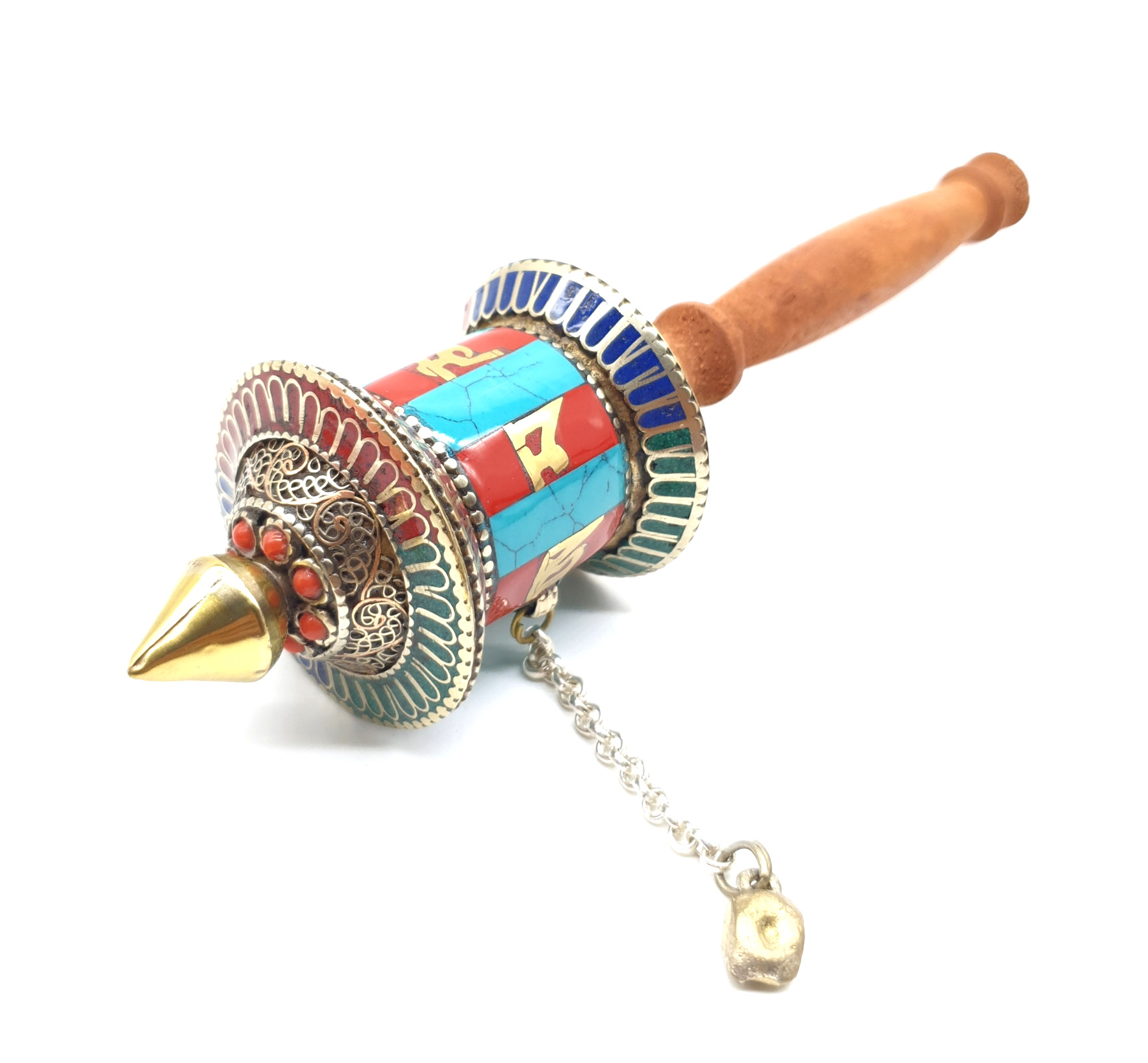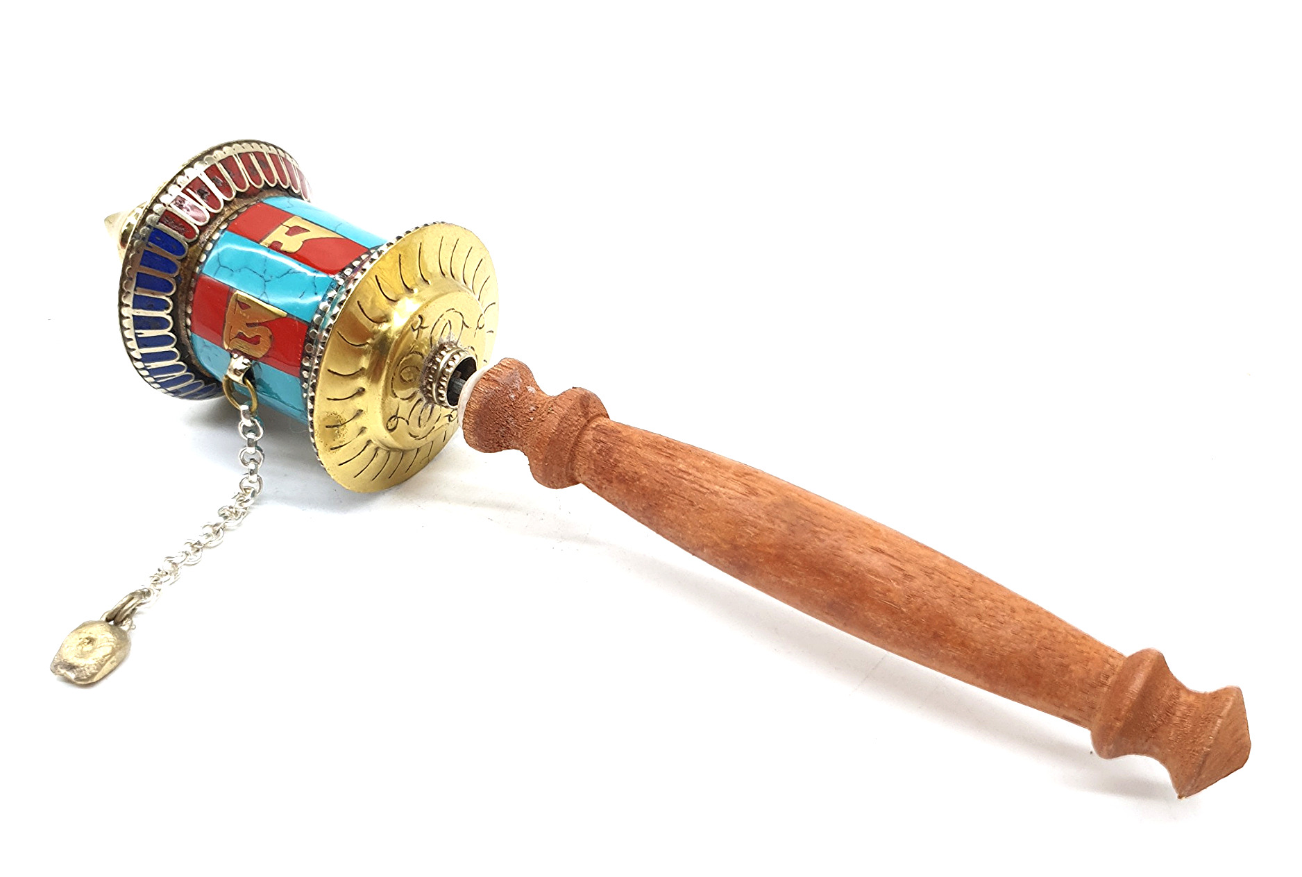 Kinh Luân Quay Tay Đính Đá Lam Ngọc Hàng Thủ Công Nepal_23x5 cm