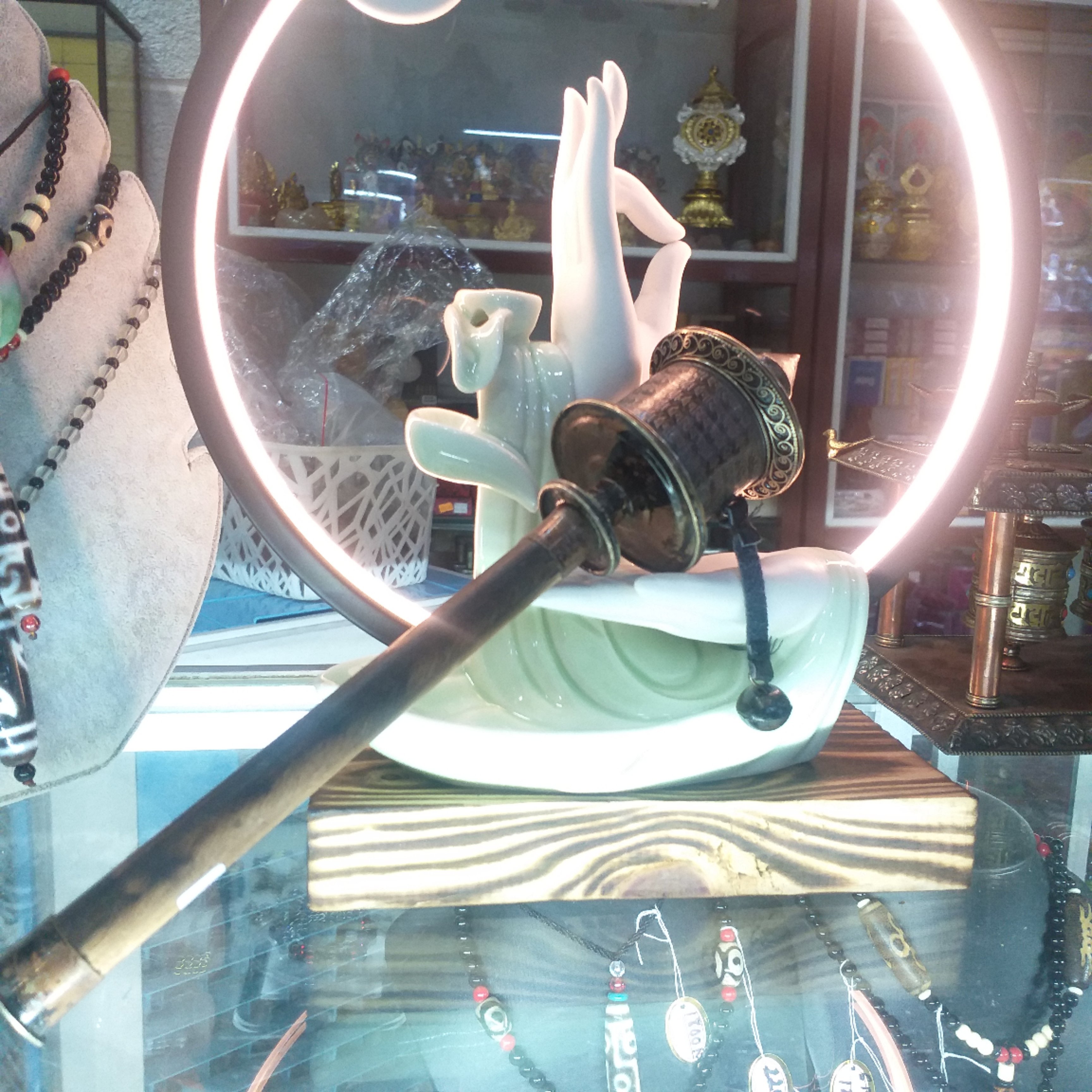 Kinh Luân Quay Tay Khắc Om Nepall 27x6cm