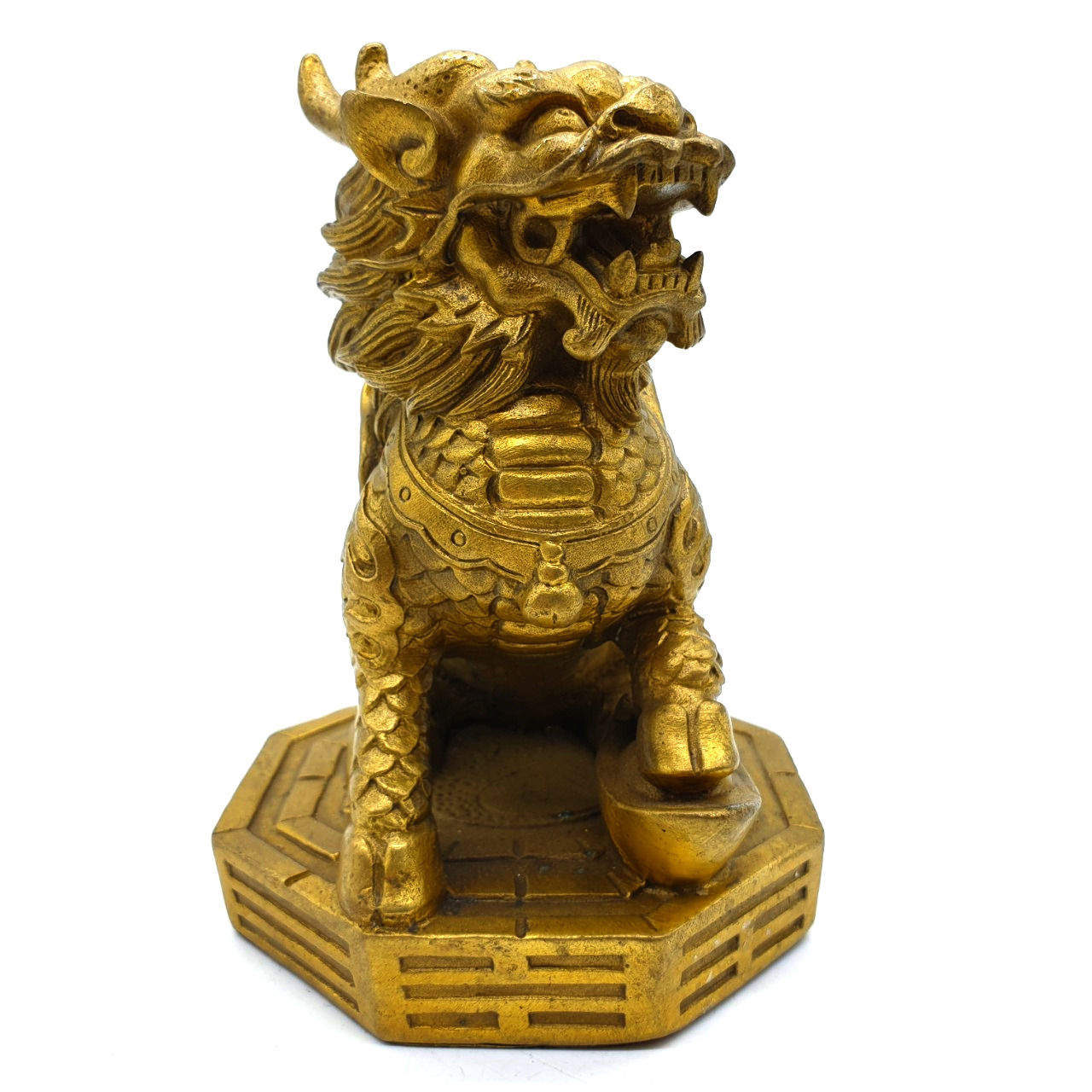 Kỳ Lân Bát Quái Đạp Thỏi Vàng_9cm_Tượng Phong Thủy