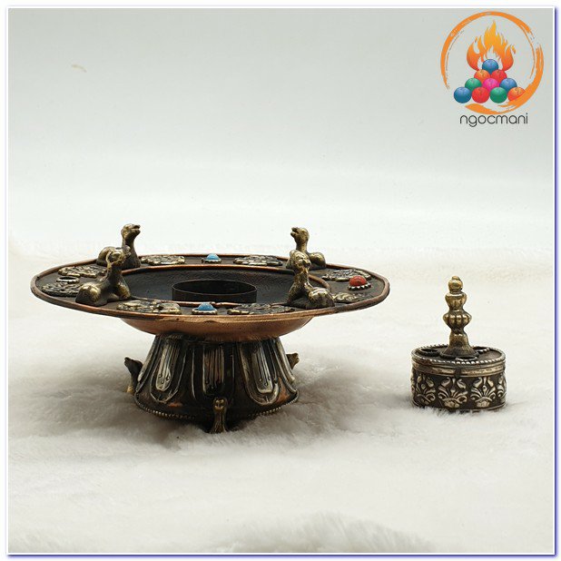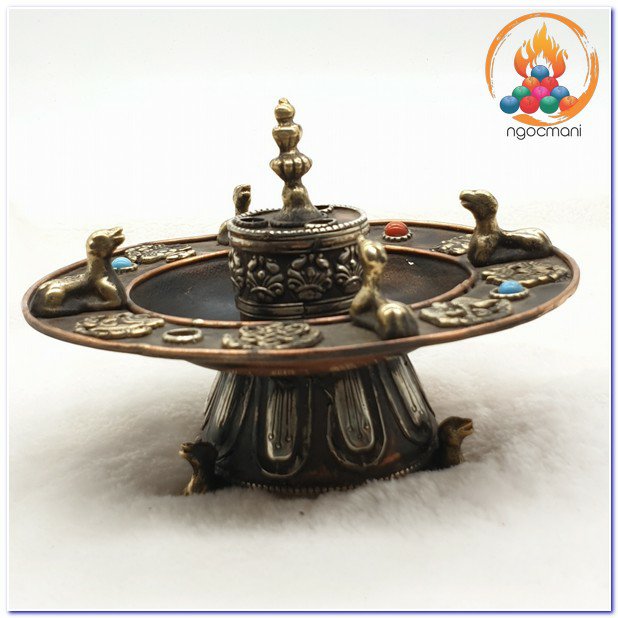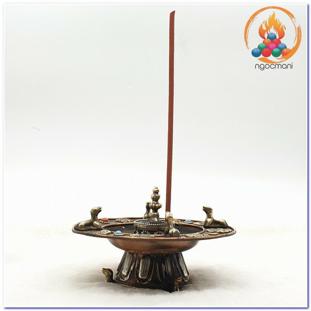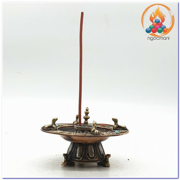 Lư Đốt Nhang Tròn Nepal Nai Chầu Nguyệt Luân_Chất liệu Đồng_Kích Thước 15x11cm