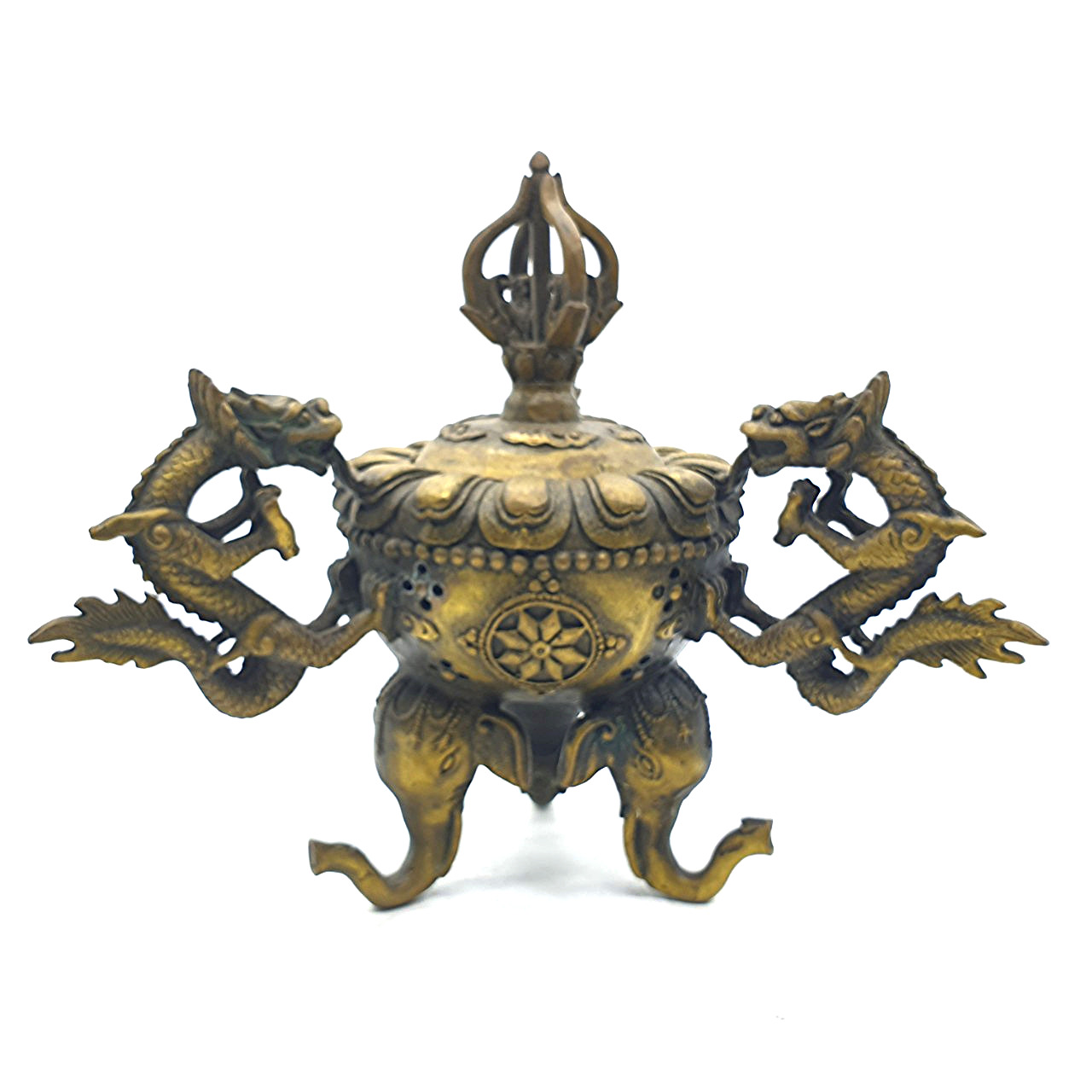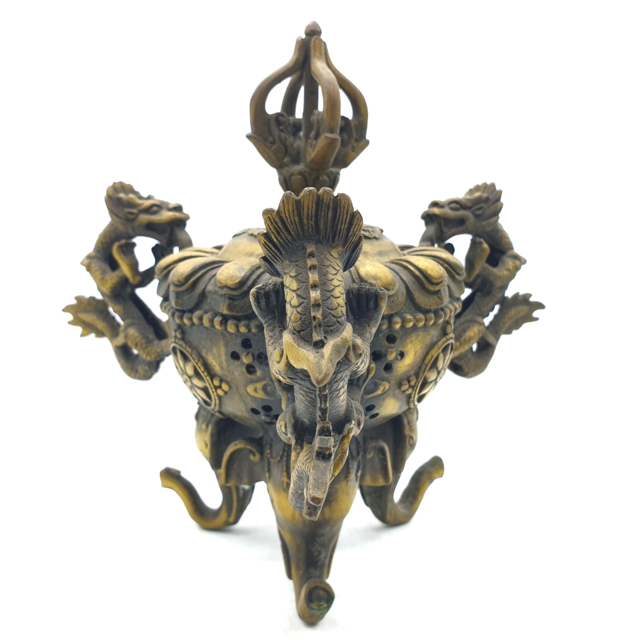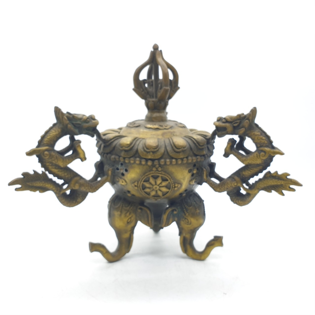 Lư Xông Khói 3 Chân 3 Quai Rồng Đỉnh Chày_22x20cm