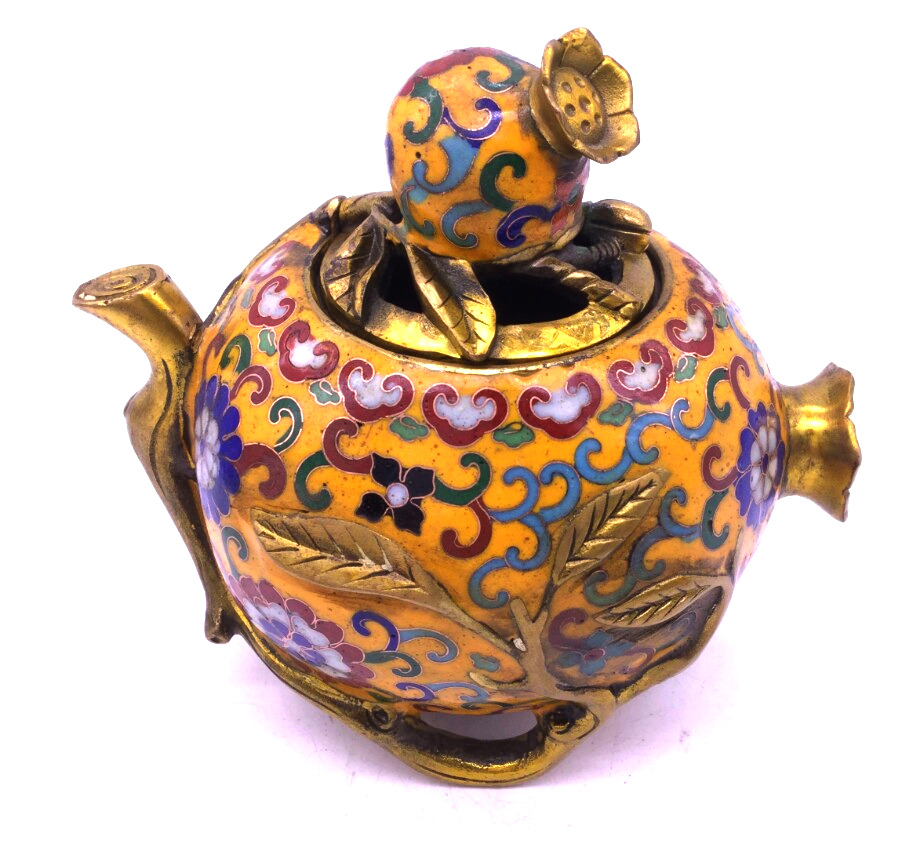 Lư Xông Khói Đính Đá Pháp Lam Trái Lựu_27x18cm