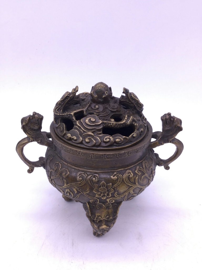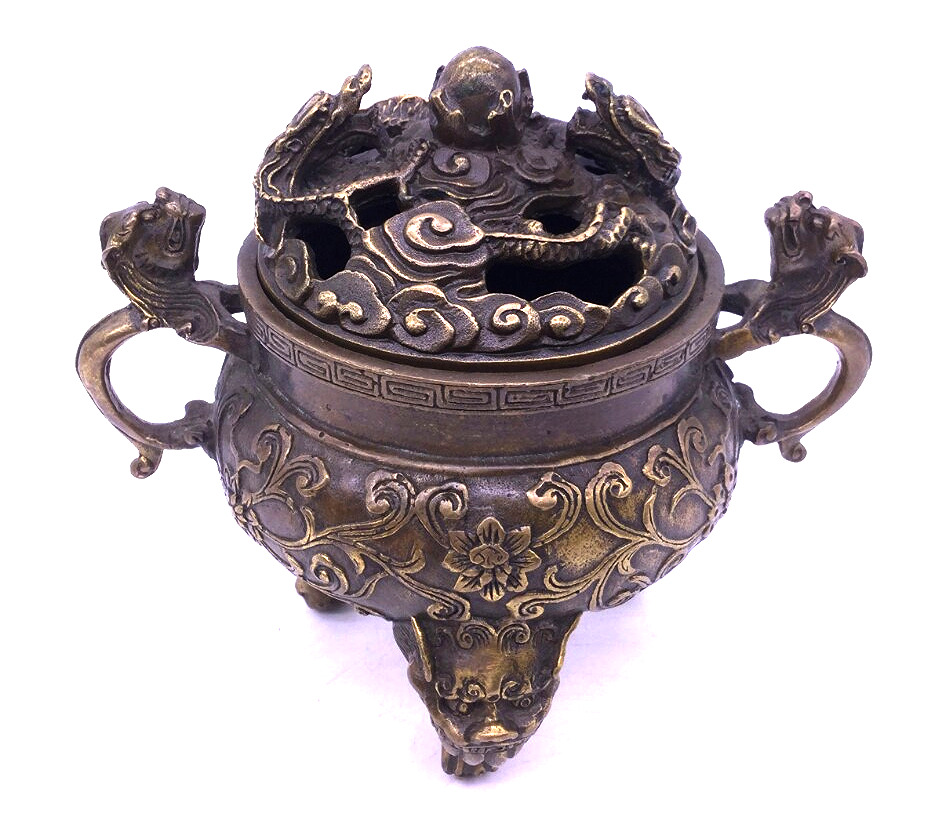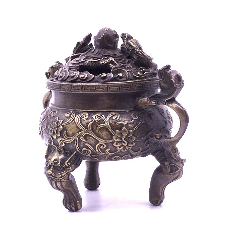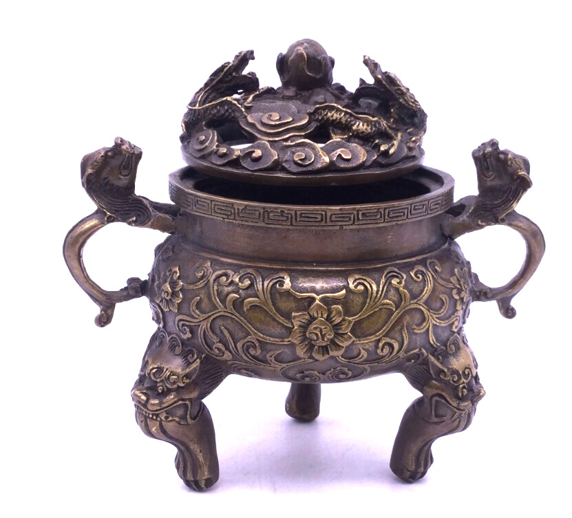 Lư Xông Khói Đỉnh Rồng Quấn Trâu 3 Chân Quai Rồng_14x15cm