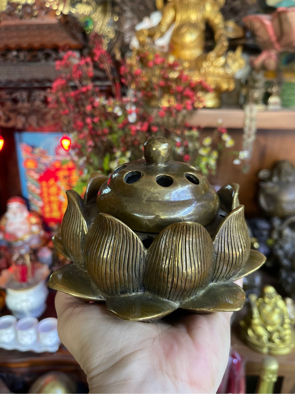 Lư Xông Khói Hoa Sen Chày Ngũ Trí _14x12cm