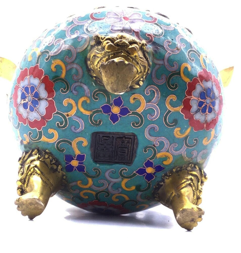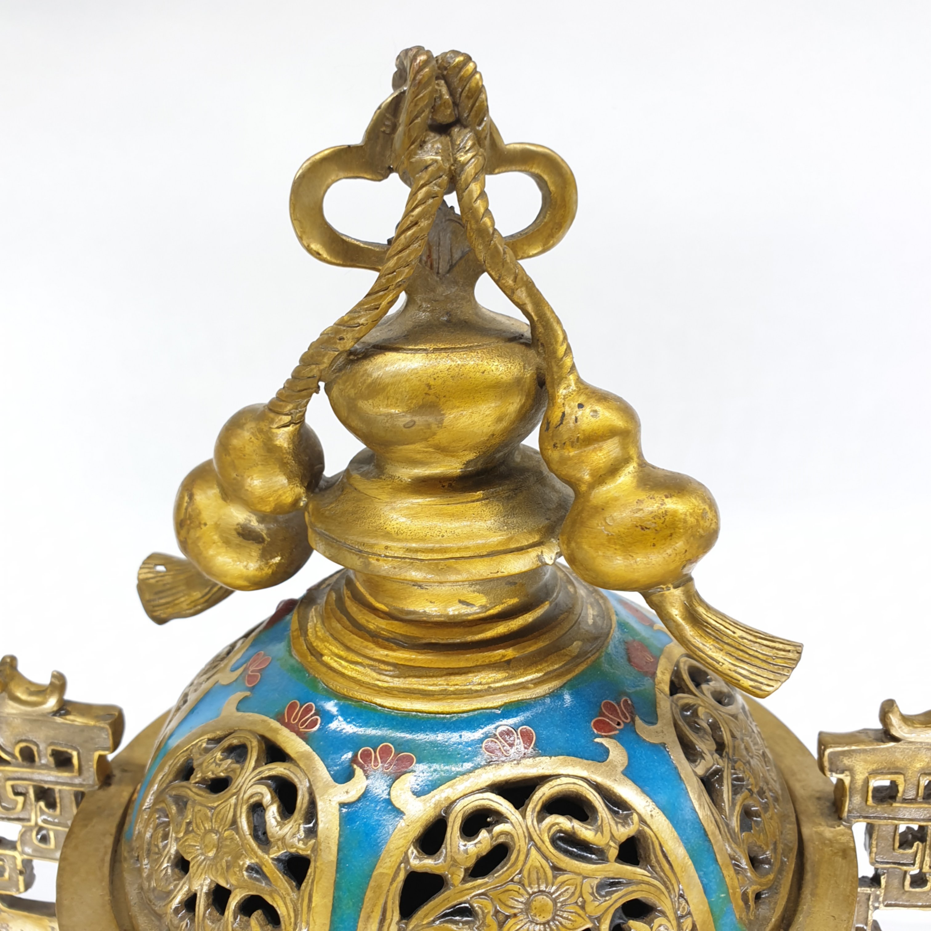 Lư Xông Khói Pháp Lam Quai Rồng, Đỉnh 2 Hồ Lô Hút Tài Lộc_28x22cm_2,3kg