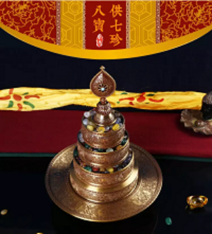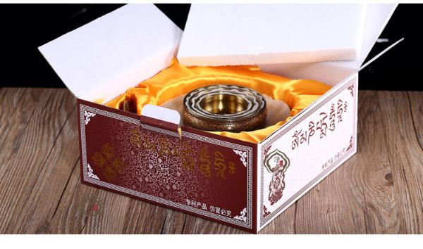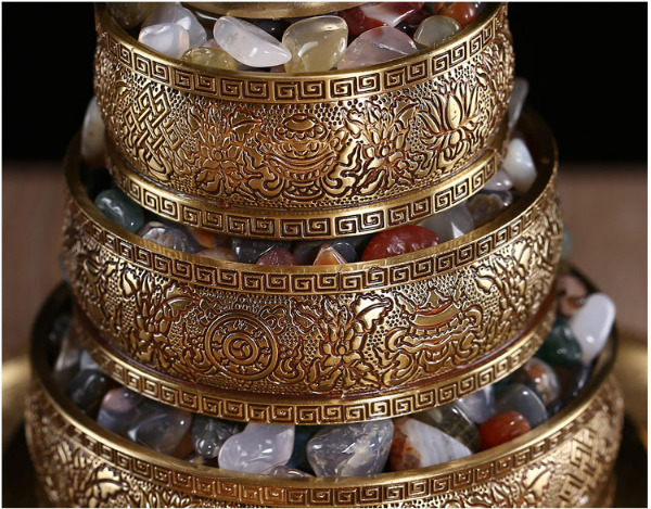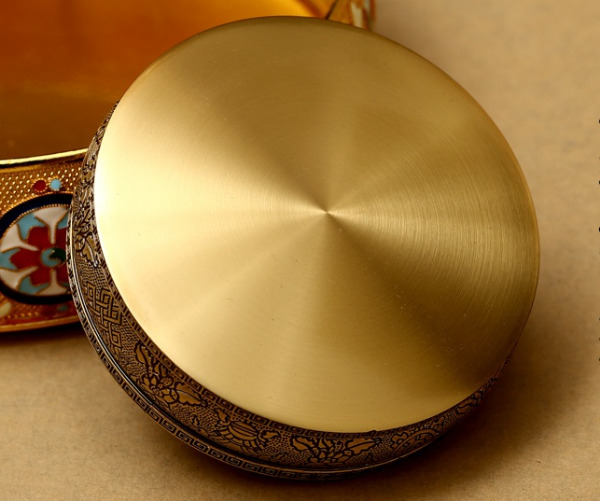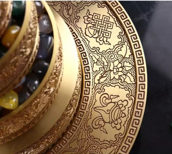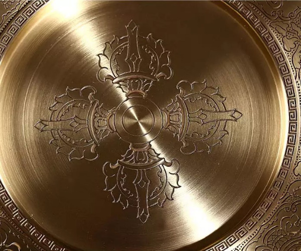Mandala Đồng Dạ Cổ Chìm Khắc Hoa Văn 8 Món Cát Tường_21,5x17cm