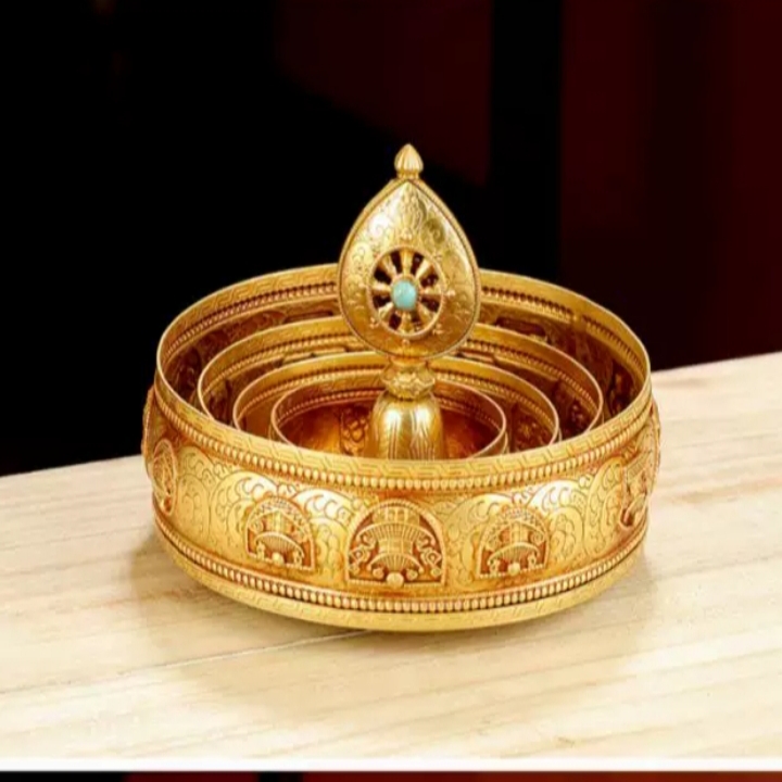 Mandala Đồng Nổi Vàng Khắc Bát Bảo Cát Tường