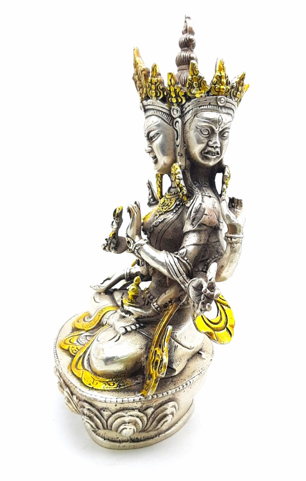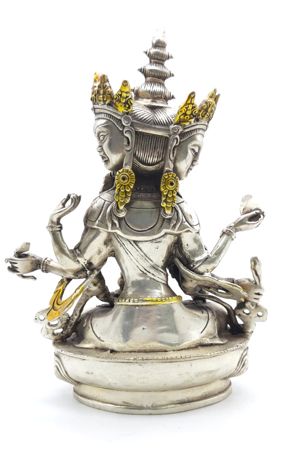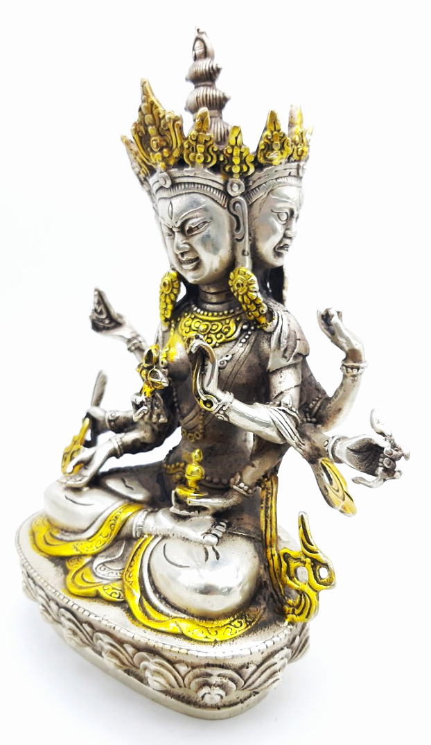 Mặt chính giữa của Ngài màu trắng, biểu thị cho sự dẹp yên tai chướng, mặt phải của Ngài màu vàng, biểu thị cho các Pháp tăng ích. Mặt bên trái của Ngài màu lam, biểu thị Pháp hàng phục. Tay Ngài nâng Đức Phật A Di Đà làm Thượng Sư, biểu thị hoài ái, tay cầm mũi tên, đại biểu sự khơi dậy lòng từ bi của chúng sinh. Ấn Thí Vô Úy đại diện cho việc dẫn chúng sanh ra khỏi tất cả sự sợ hãi, ấn Thí Nguyện biểu thị sự đáp ứng đầy đủ tất cả tâm nguyện của chúng sanh, tay cầm cây cung biểu thị cho sự chiến thắng tam giới. Trên bàn tay kiết ấn Định nâng bình cam lồ giúp chúng sinh vô bệnh tật, sống lâu. Chày kim cang đôi hình chữ thập biểu thị hàng ma, trừ tai chướng để sự nghiệp thành tựu, dây trói đại biểu cho việc hàng phục tất cả chúng sinh khó điều phục.