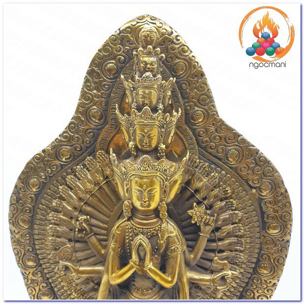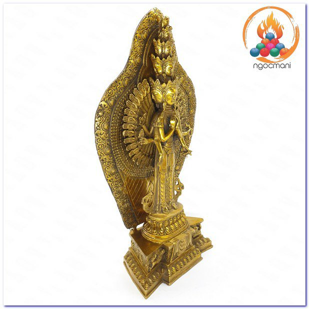Bên trái:Taythứ hai cầm hoa sen vàng, tay thứ ba cầm bình có chứa nước Cam Lộ, tay thứ tư cầm cung tên.