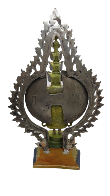 Bên phải:Taythứ hai cầm tràng hạt, tay thứ ba kết Diệu Thí Thắng Ấn, tay thứ tư cầm Pháp Luân.