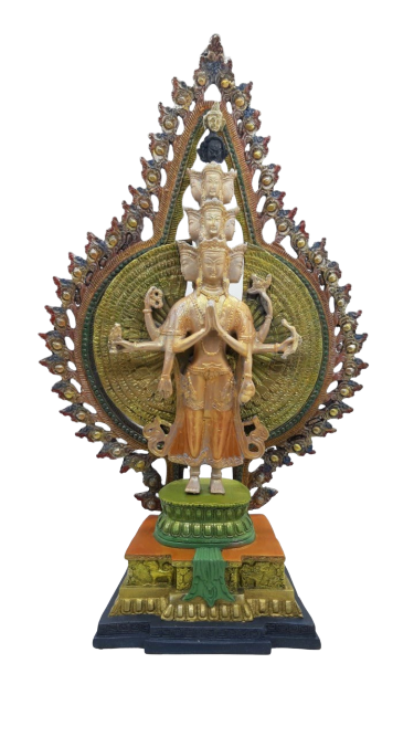 Trong truyền thống này thì Ngài có thân màu trắng. 11 mặt xếp thành 5 tầng: