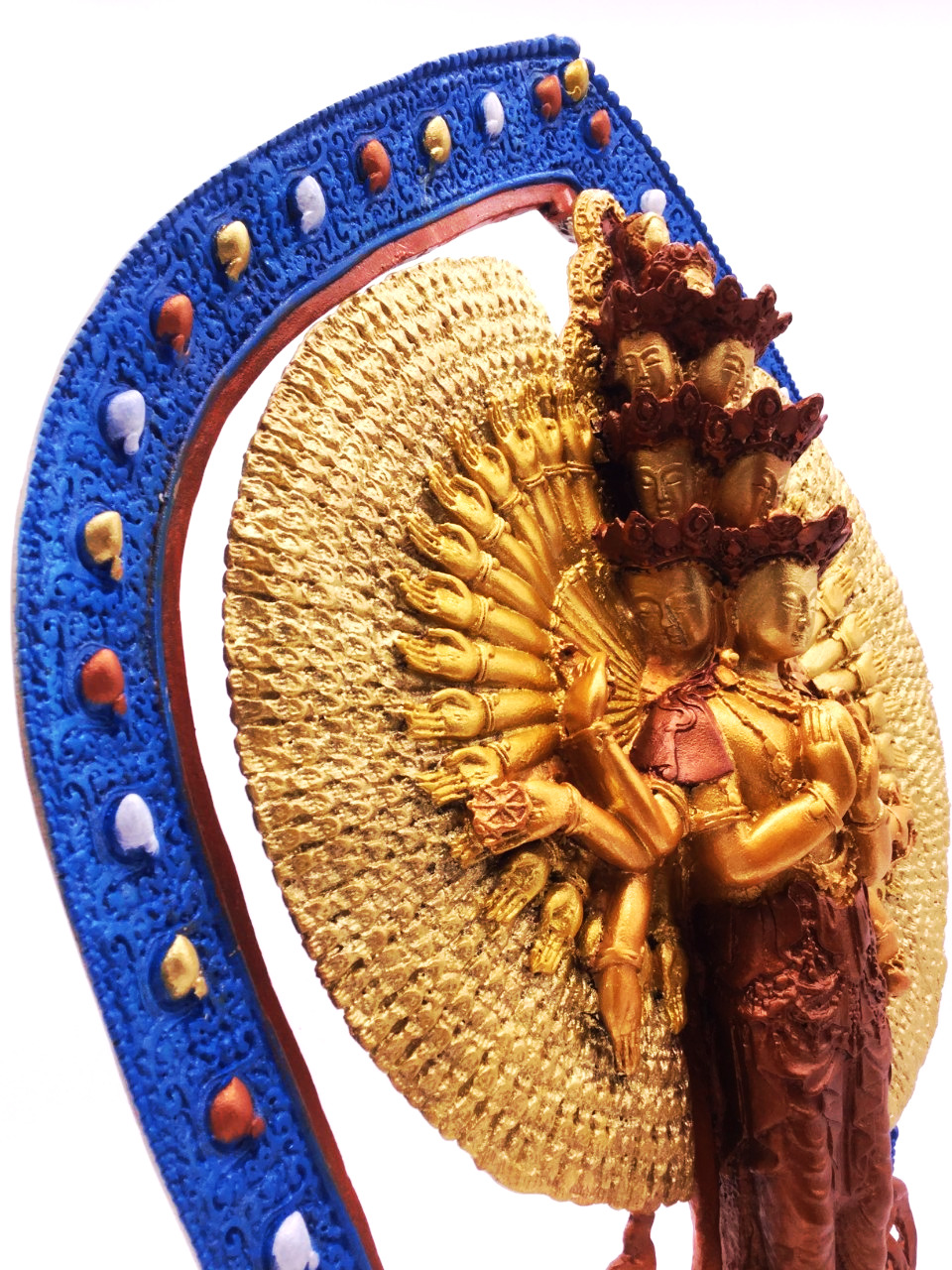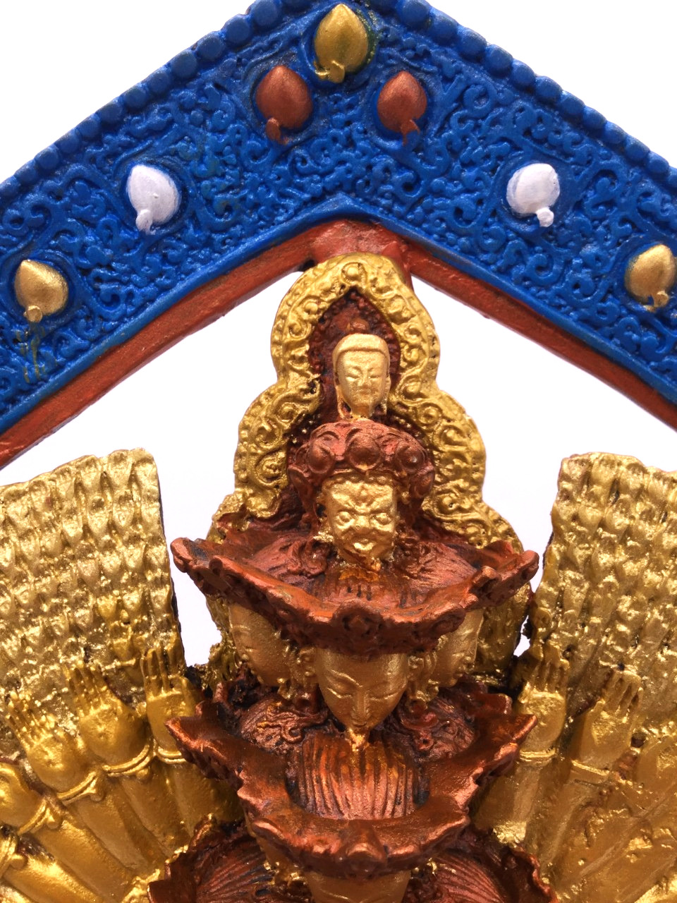 Trong truyền thống này thì Ngài có thân màu trắng. 11 mặt xếp thành 5 tầng:
