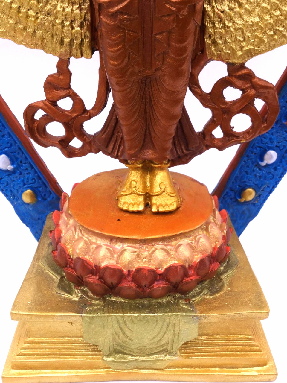 Bên phải:Taythứ hai cầm tràng hạt, tay thứ ba kết Diệu Thí Thắng Ấn, tay thứ tư cầm Pháp Luân.