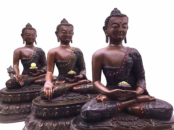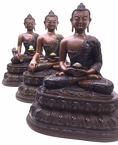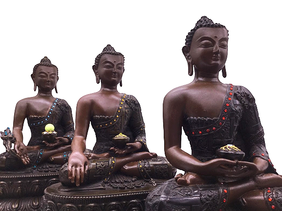 Tượng Phật Tam Tôn_Chất liệu Đồng Nâu Dạ Cổ Vẽ_Cao 34cm