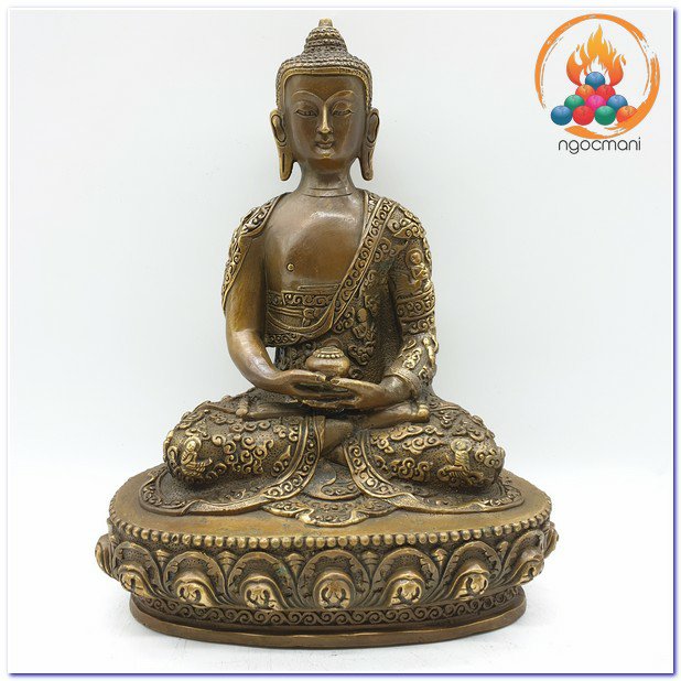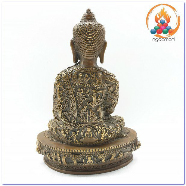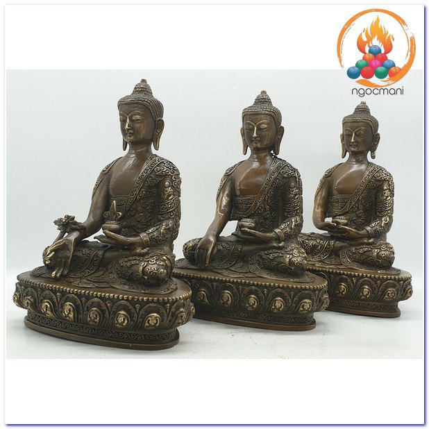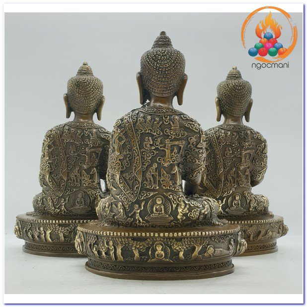 Tượng Phật Tam Tôn (Áo Khắc Cuộc Đời Phật)_Chất liệu Đồng Nâu Dạ Cổ_Cao 22cm