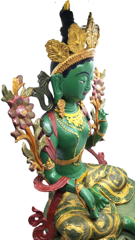 Sắc xanh của Ngài nêu biểu cho sự thành công của sự xả bình đẳng trong thế giới trần tục, cũng như trong sự phát triển thế giới tâm linh cho chúng ta cảm giác vui vẻ, hy vọng và lạc quan. Những tâm nguyện của Đức Tara có thể dễ dàng nở hoa kết trái và hạnh nguyện của Ngài nhanh chóng cảm ứng tới chúng sinh không thể nghĩ bàn. Vì lý do này, bằng sự quán tưởng và cầu nguyện Đức Tara, chúng ta có năng lực để tạo ra nhân của hạnh phúc và sự thông tuệ trong sự thực hành pháp trên con đường tự lợi, lợi tha.