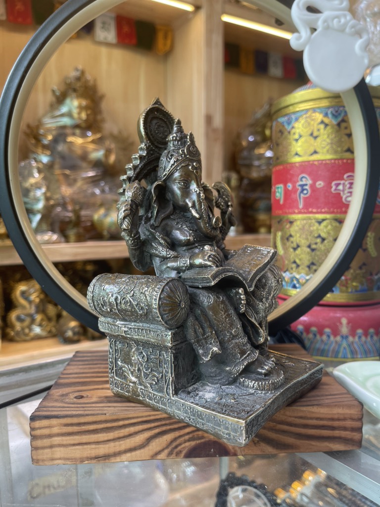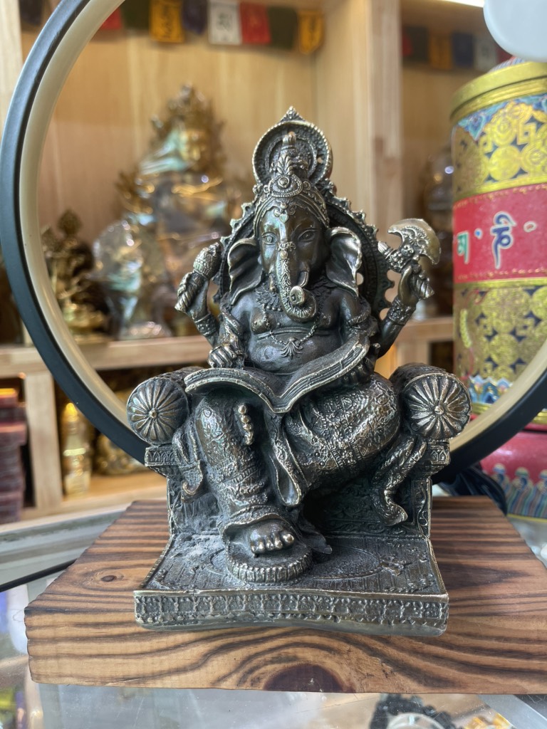 Ganesha là một vị thần đầu voi tượng trưng “cho sự hợp nhất giữa tiểu vũ trụ và đại vũ trụ”, được xem là vị Phúc thần đáp ứng những điều may mắn, cát tường cho mọi lời cầu nguyện. Ngài là đứa con ra đời từ cuộc hợp hôn giữa thần Shiva với con gái của thần núi Himalaya là nàng Uma Himavutee thường được gọi bằng một tên gợi cảm là Parvati (Sơn nữ). Trong một lần tức giận Shiva đã chặt rụng đầu của Ganesha. Do thấy vợ là Parvati khóc thương thảm thiết nên Shiva ra lệnh cho người hầu ra ngoài tìm một cái đầu về trong vòng một ngày, nhưng đoàn người hầu đi từ sáng sớm đến chiều tối chỉ tìm thấy một con voi, họ bèn chặt đầu con voi đó dâng lên cho Shiva. Shiva liền gắn đầu voi vào thân Ganesha. Từ đó thần Ganesha có hình dáng mình người đầu voi. Thần có nhiều tài năng, dập tắt mọi trở ngại khó khăn, có quyền ban mọi điều tốt lành, thần bảo vệ bếp lửa, thần là hiện thân của thông minh và trí tuệ của thần Shiva. Thần Ganesha được hiển thị với hình ảnh thân người đầu voi và hình ảnh này đã được tôn thờ ở khắp Nepal lẫn ở Ấn Độ, Thái lan, Campuchia.