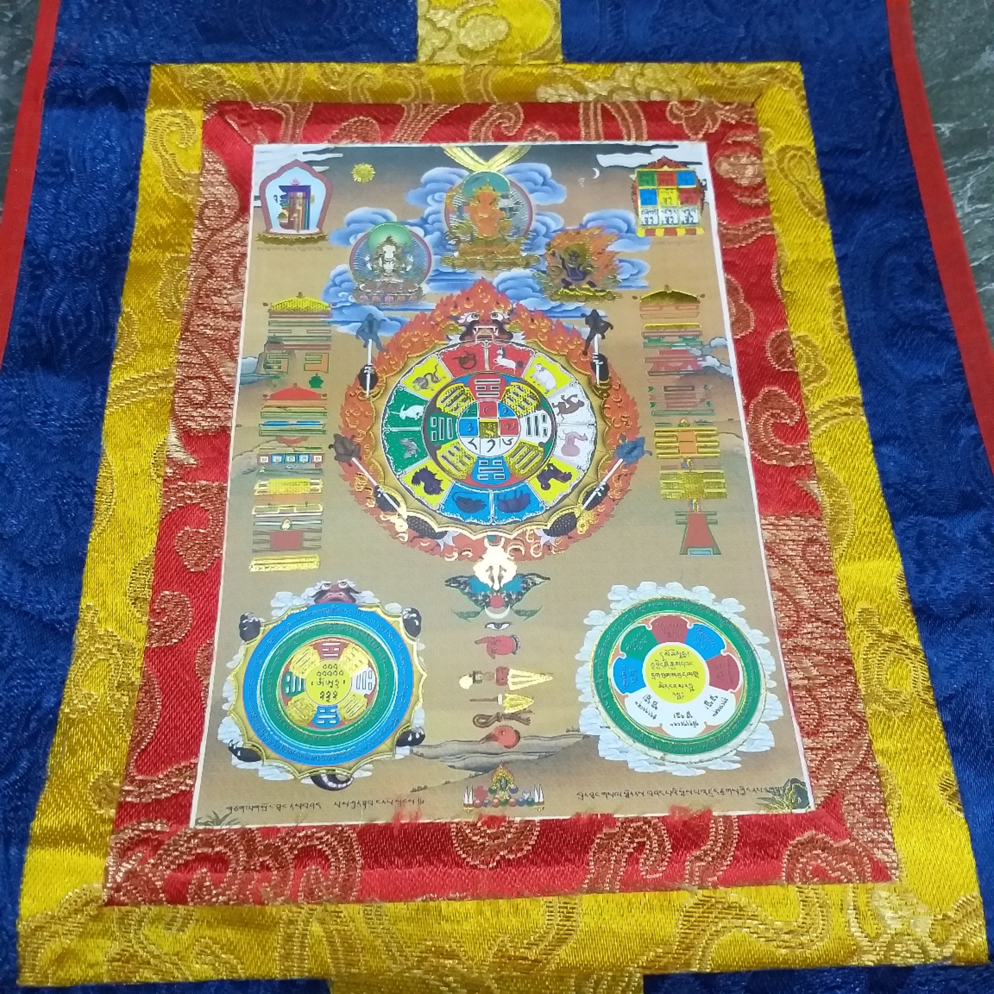 Phía bên trái là Thời Luân Kim Cương Chú Luân khiến cho phương trên, phương dưới, Đông, Nam, Tây, Bắc, bốn góc cùng với nhóm năm, tháng, ngày, giờ là Thời Không Vũ Trụ, tổ hợp Thế Giới tất cả tự tại