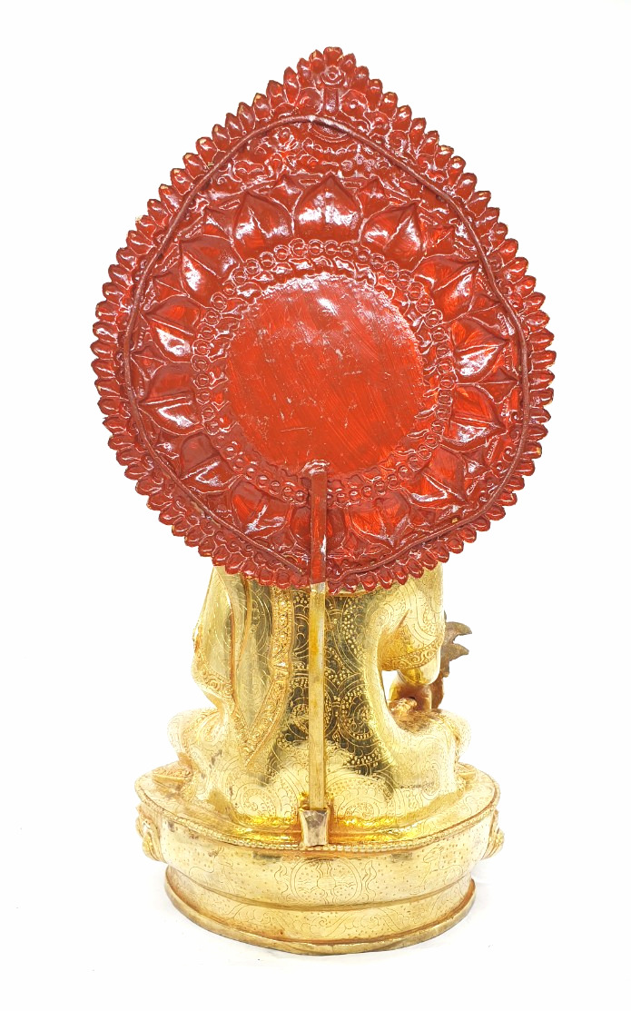 Giống như các hình tượng của các vị Bồ tát và chư Phật khác. Phật Dược Sư ngồi trên đài hoa sen, với tay phải của ngài thả lỏng xuống, lòng bàn tay mở ra ngoài. Cử chỉ (mudra) này cho thấy Ngài đã sẵn sàng để tiếp nhận các lời cầu nguyện hoặc ban phước cho chúng sinh.