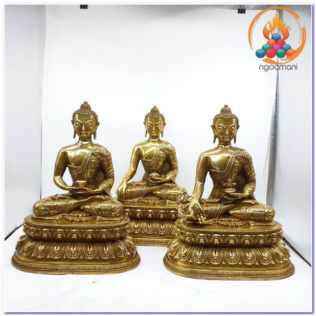 Tượng Phật Tam Tôn Mật Tông_Chất Liệu Đồng Trơn_Cao 30cm
