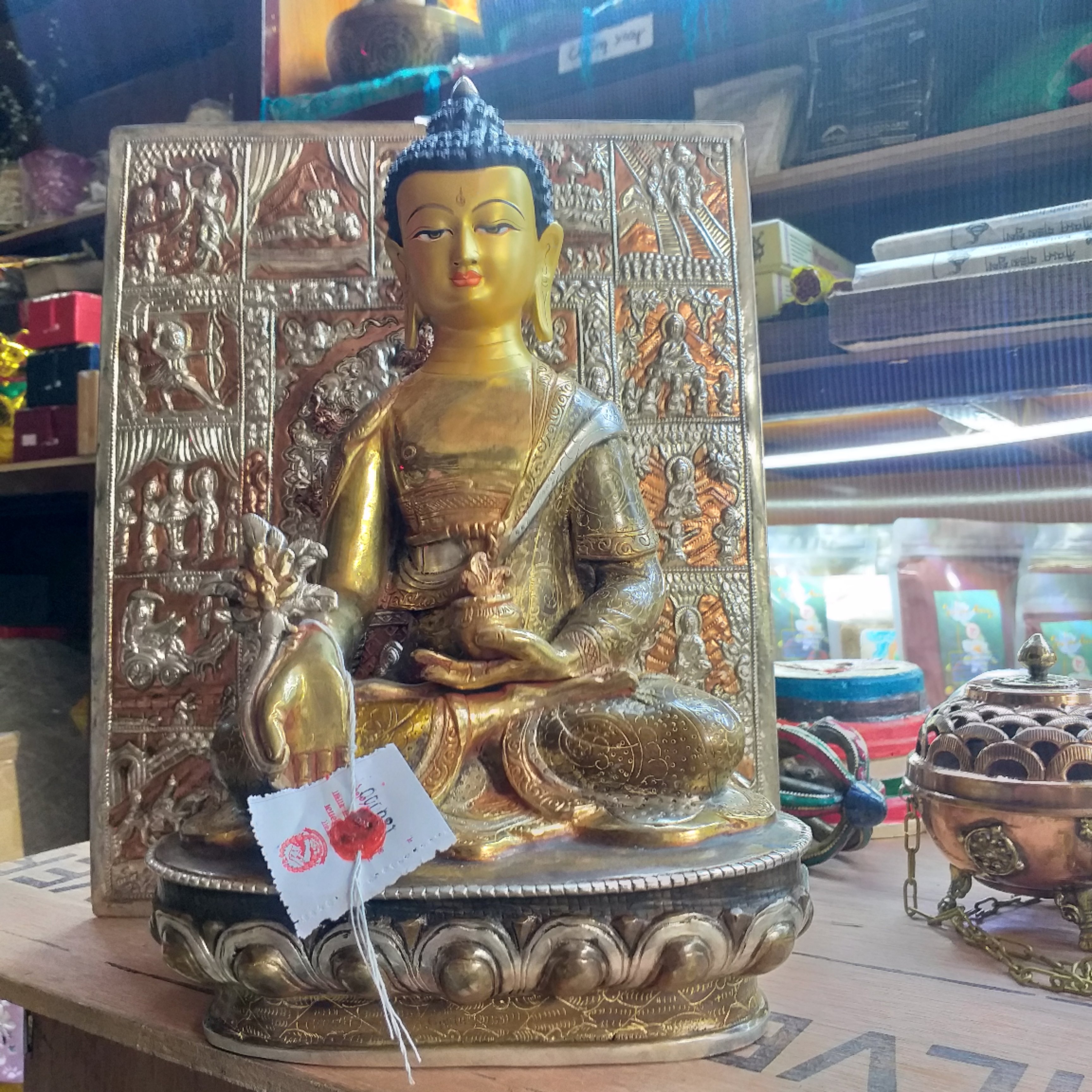 Tuợng Phật Dươc Sư NePall 34cm Đồng Vẽ Thủ Công