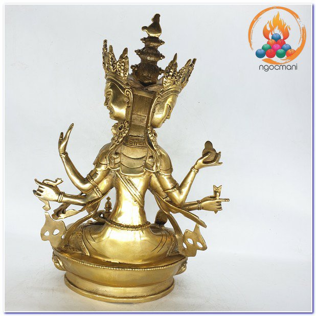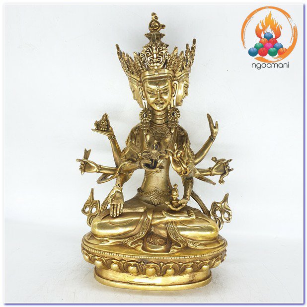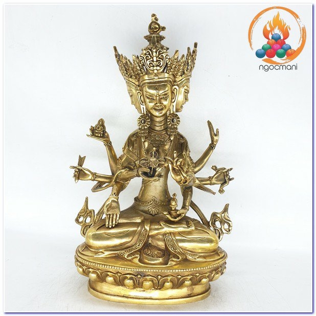 Mặt chính giữa của Ngài màu trắng, biểu thị cho sự dẹp yên tai chướng, mặt phải của Ngài màu vàng, biểu thị cho các Pháp tăng ích. Mặt bên trái của Ngài màu lam, biểu thị Pháp hàng phục. Tay Ngài nâng Đức Phật A Di Đà làm Thượng Sư, biểu thị hoài ái, tay cầm mũi tên, đại biểu sự khơi dậy lòng từ bi của chúng sinh. Ấn Thí Vô Úy đại diện cho việc dẫn chúng sanh ra khỏi tất cả sự sợ hãi, ấn Thí Nguyện biểu thị sự đáp ứng đầy đủ tất cả tâm nguyện của chúng sanh, tay cầm cây cung biểu thị cho sự chiến thắng tam giới. Trên bàn tay kiết ấn Định nâng bình cam lồ giúp chúng sinh vô bệnh tật, sống lâu. Chày kim cang đôi hình chữ thập biểu thị hàng ma, trừ tai chướng để sự nghiệp thành tựu, dây trói đại biểu cho việc hàng phục tất cả chúng sinh khó điều phục.