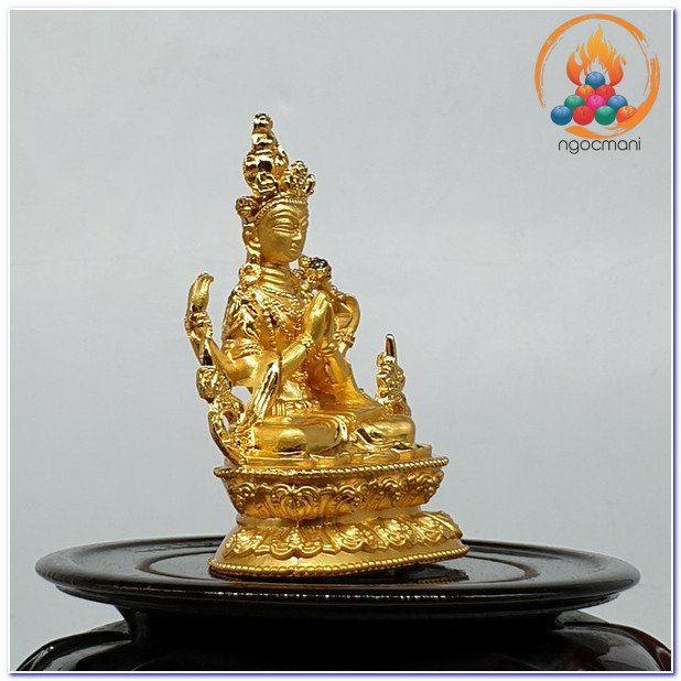 Tượng Quan Âm Tứ Thủ Bồ Tát_Chất liệu Hợp Kim Xi Vàng_Cao 8cm